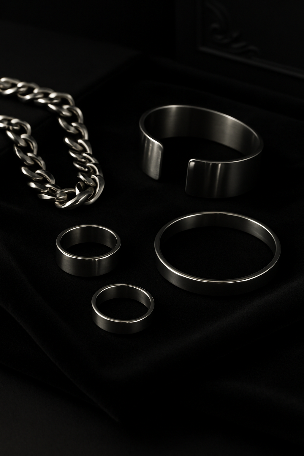 Besonders in der Herrenmode setzte sich Edelstahlschmuck schnell durch: Armbänder, Ringe und Halsketten aus Edelstahl standen für maskuline Eleganz und urbanen Stil.