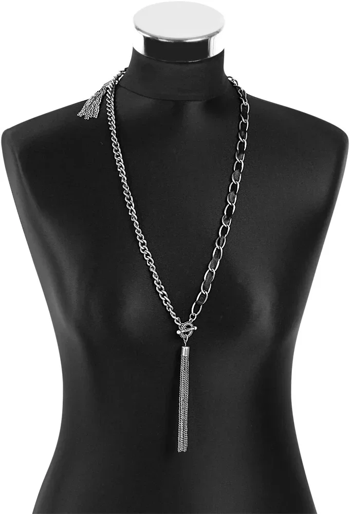 Durch die Kombination von silberfarbigen und schwarzen Elementen ist diese Kette ein ideales Accessoire für Damen, die auf der Suche nach vielseitigem Schmuck sind, der zu verschiedenen Outfits und Stilen passt. Ob für den modernen Look oder als elegantes Statement – diese Kette ist ein Must-have in jeder Schmuckkollektion.