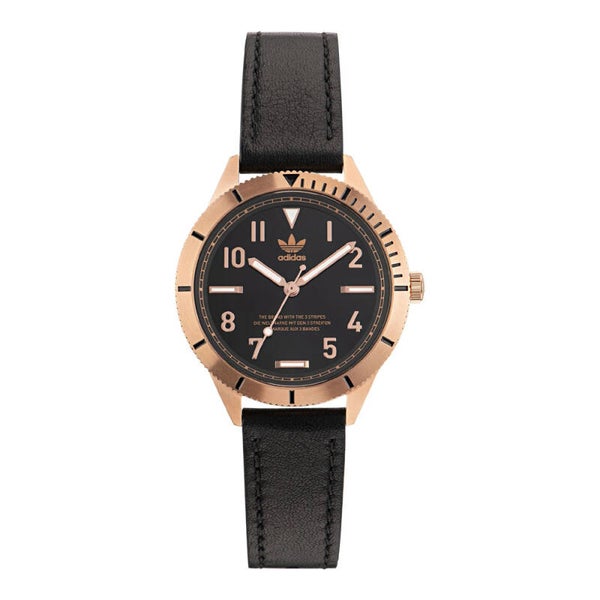 Die Adidas Edition Three AOFH22507 Damenuhr kombiniert elegantes Design mit sportlicher Funktionalität. Das Edelstahlgehäuse in roségoldfarbener Beschichtung, mit einer mattierten und polierten Oberfläche, verleiht der Uhr eine edle und moderne Ausstrahlung. Das schwarze Lederarmband mit Dornschließe sorgt für einen komfortablen Sitz und rundet das stilvolle Erscheinungsbild ab.