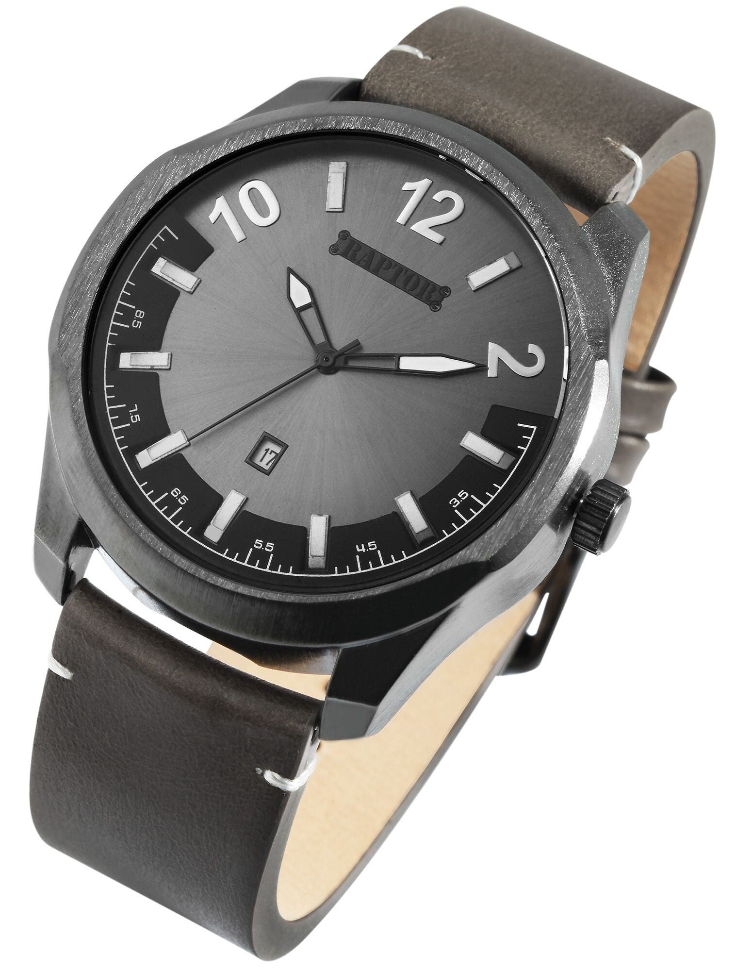 Raptor Herrenuhr "Charley" – Stilvolle Präzision mit Datumsanzeige und Echtlederarmband
