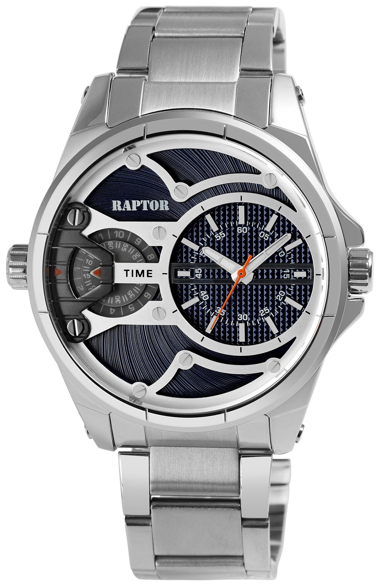 RAPTOR Herrenuhr "Gabriel" mit 2 Uhrwerken, Edelstahlband, 3ATM