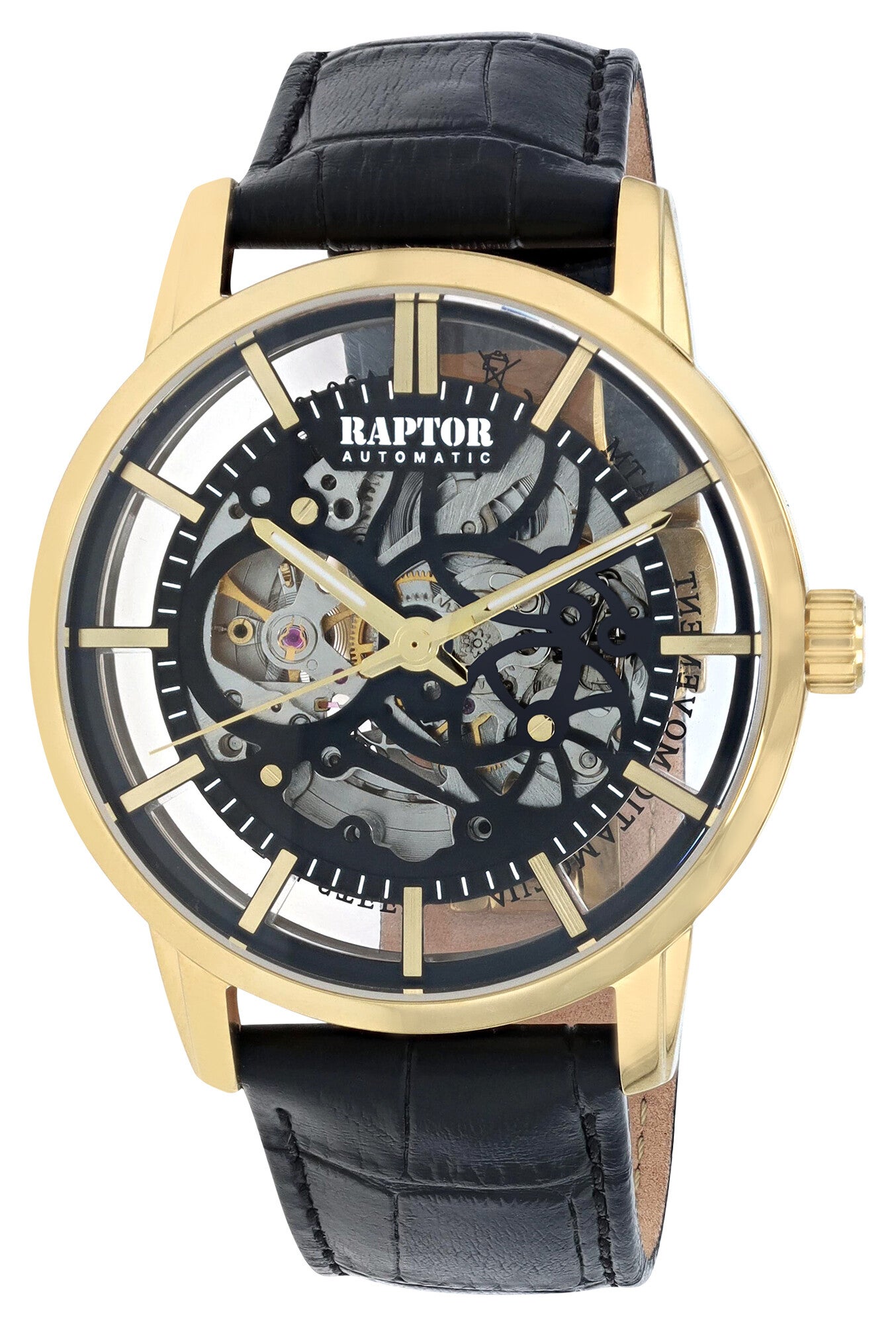 RAPTOR AUTOMATIK Skelett-Herrenuhr "Jonte", Echtleder, 5ATM