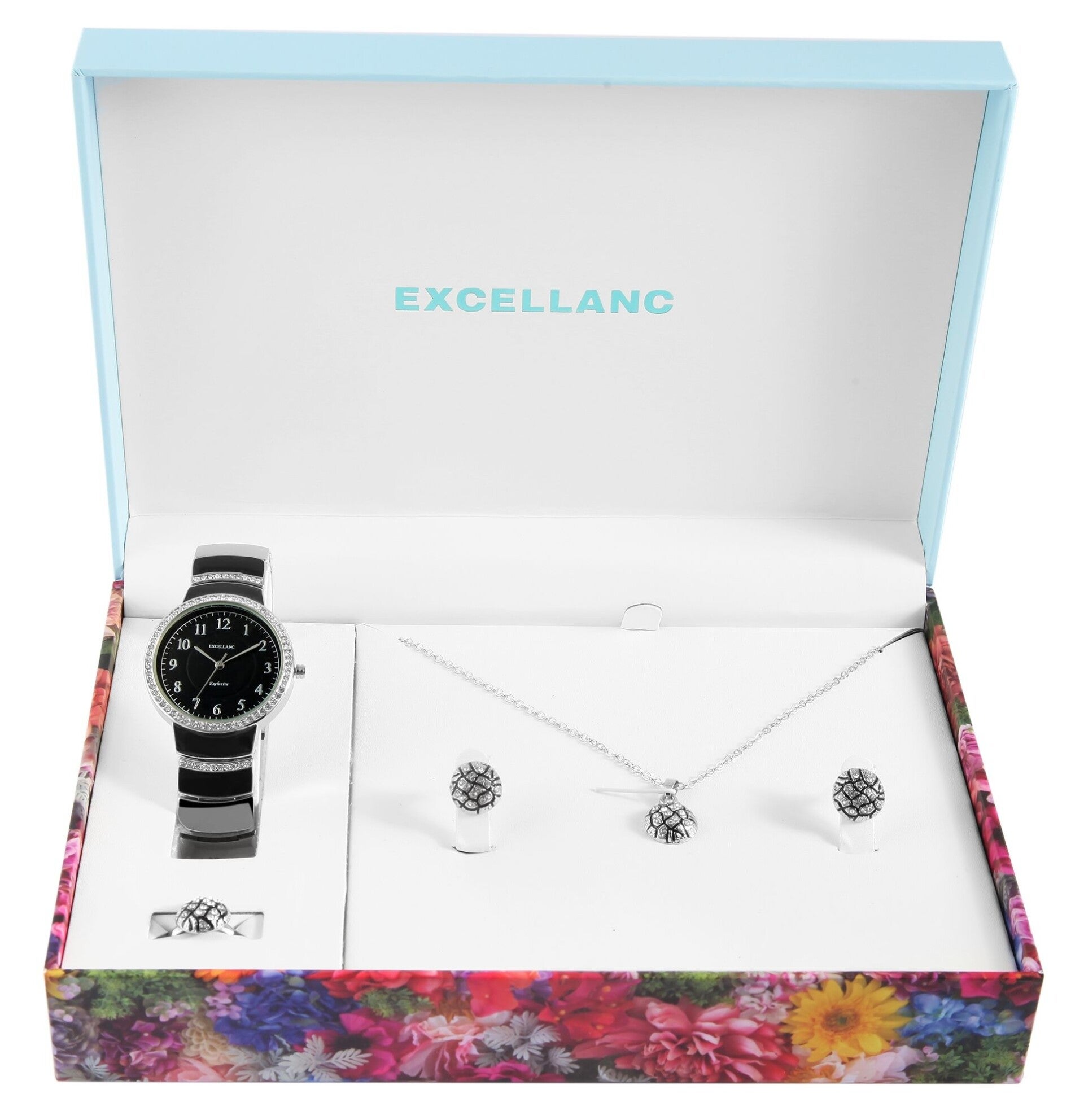 #Excellanc #Damengeschenkset #Armbanduhr #Schmuckset #Strassschmuck #Ohrstecker #VerstellbarerRing #Halskette #ModischerLook #Geschenkidee #Stilvoll #Strassliebe #Glanzmomente