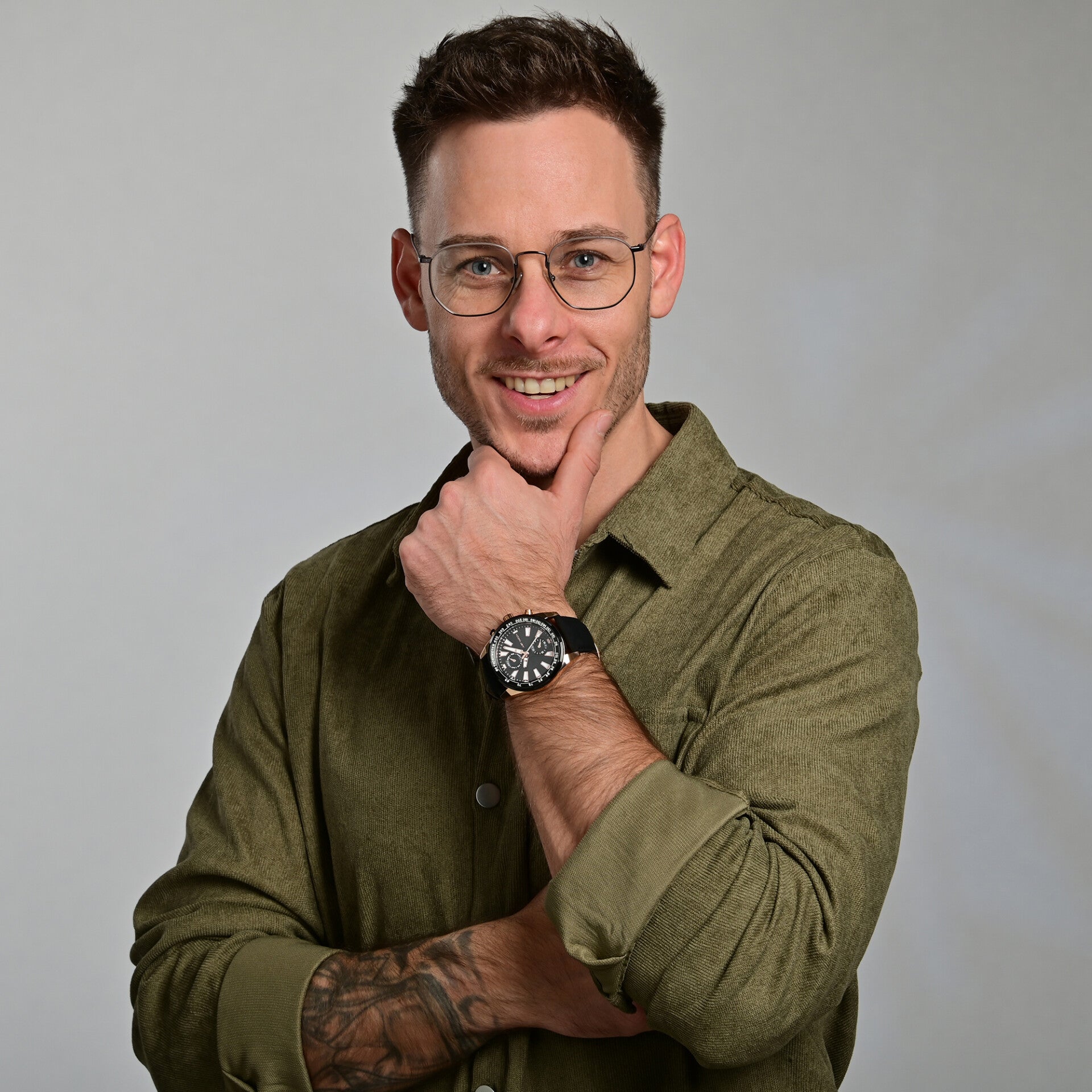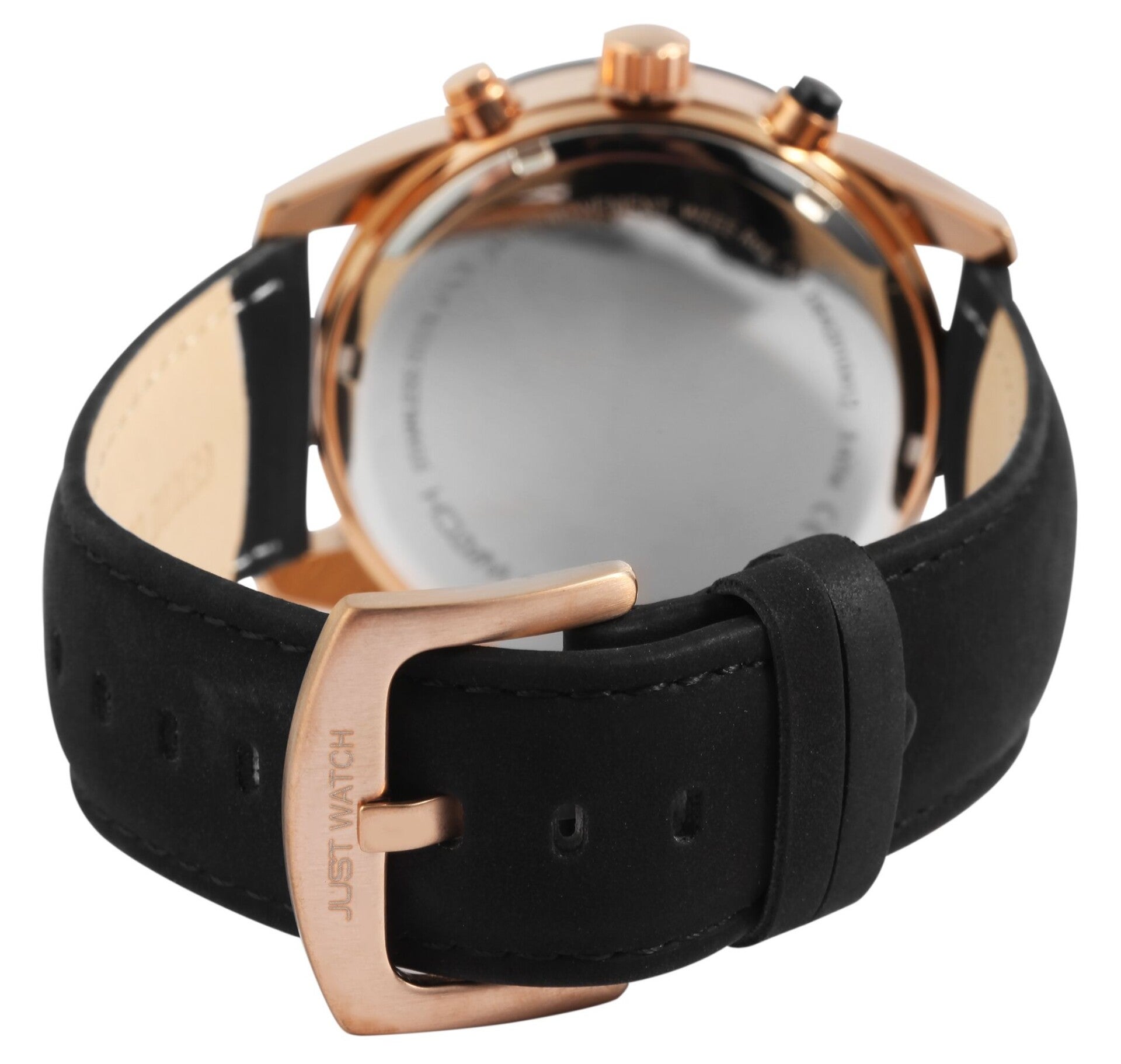 Das Echtlederarmband mit einer Breite von 24 mm und einer klassischen Edelstahl-Dornschließe sorgt für angenehmen Tragekomfort und sicheren Halt. Die Gesamtlänge von 26 cm macht die Uhr für nahezu jedes Handgelenk passend. Das runde Metallgehäuse, wahlweise in Schwarz, Silber- oder Roségold-Optik, unterstreicht den maskulinen Look und wird durch ein kratzfestes Mineralglas geschützt.