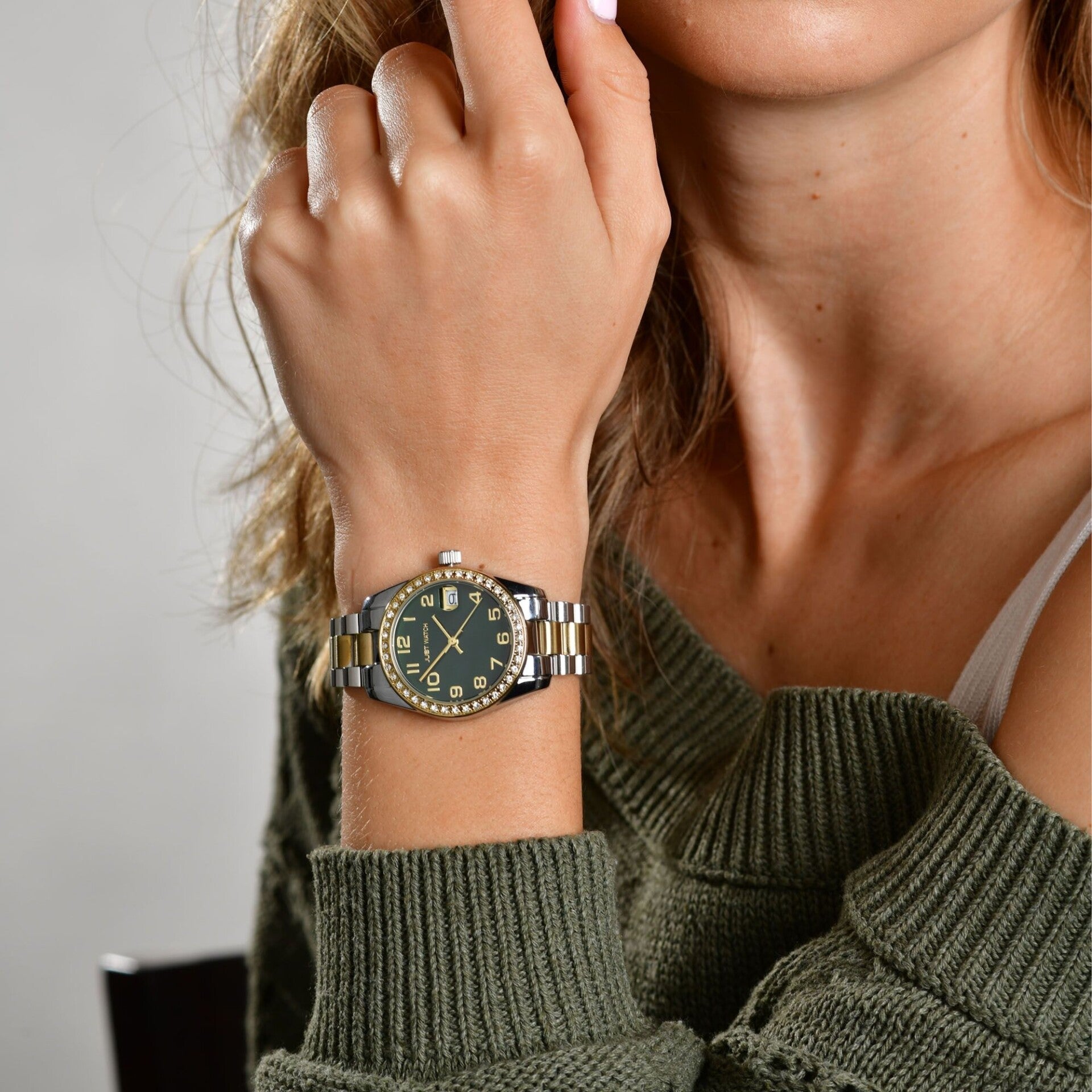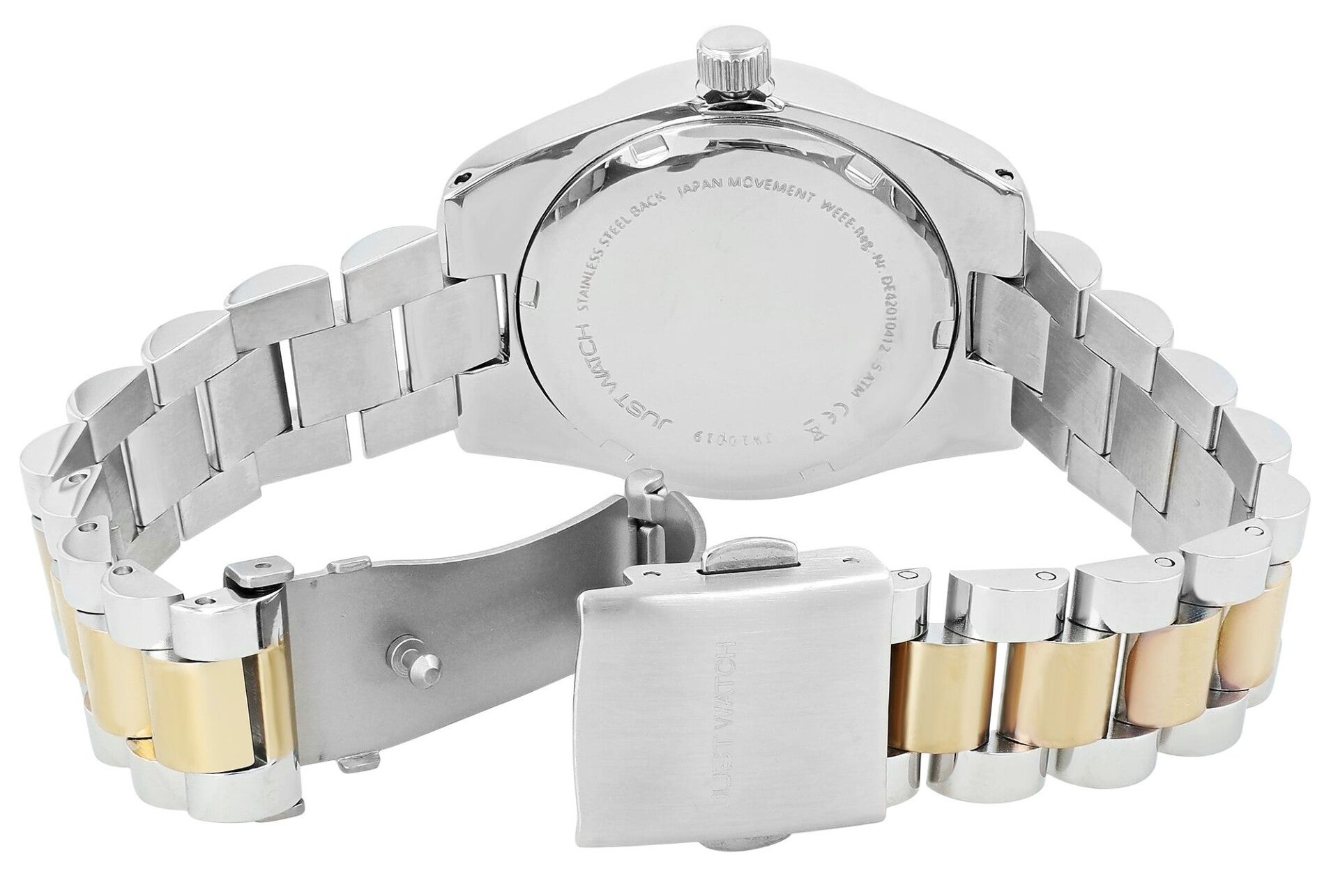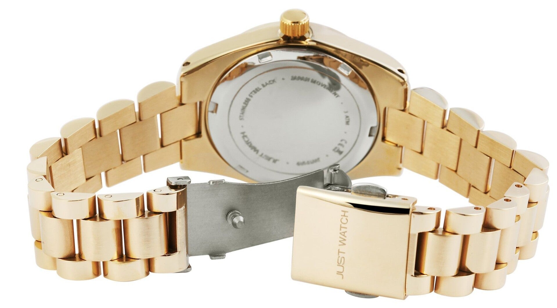 Modellbezeichnung:EmmiMarke:Just WatchArtikelart:UhrenGeschlecht:DamenStil:ModischGravur:WahrUhrart:ArmbanduhrUhrenstil:modeAnzeigeart:AnalogWasserdichtigkeit:3 barVerschluss:Edelstahl FaltschließeFarbe 1:goldfarbig, silberfarbigFarbe 2:goldfarbig, silberfarbigFarbe 3:roségoldfarbig, Schwarz, silberfarbig, WeißIP Beschichtet:WahrMaterial 1:MetallMaterial 2:EdelstahlGesamtlänge der Uhr in cm:19Artikelgewicht in g:81Artikelversandgewicht in g:241Bandart:GliederarmbandBandmaterial:EdelstahlBandfarbe:goldfarbig, silberfarbigBandfarbe 2:goldfarbig, roségoldfarbigBandbreite in mm:16Gehäuseform:RundGehäusematerial 1:MetallGehäusefarbe 1:goldfarbig, silberfarbigGehäusefarbe 2:goldfarbig, roségoldfarbigGehäusehöhe in mm:10Gehäusedurchmesser in mm:33Gehäusebodenmaterial:EdelstahlZifferblatteinteilung:ArabischZifferblattfarbe 1:Dunkelgrün, Schwarz, silberfarbig, WeißIndexfarbe 1:goldfarbig, silberfarbigUhrwerktyp 1:Miyota 2115Glas:MineralglasGlasfarbe:TransparentDatumsanzeige:WahrStrass:WahrSteine außen:Wahr