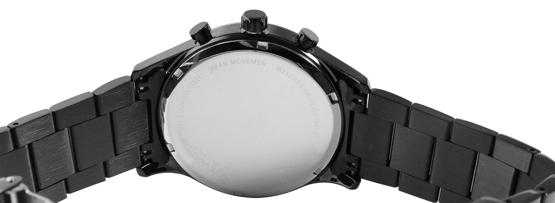 Das massive Edelstahl-Gliederarmband mit 24 mm Breite schließt sicher mit einer hochwertigen Faltschließe – für ein komfortables Tragegefühl und festen Sitz. Die Uhr bietet praktische Funktionen wie Datumsanzeige und Stoppfunktion, und ist mit einer Wasserdichtigkeit von 3 Bar für den Alltag gerüstet.