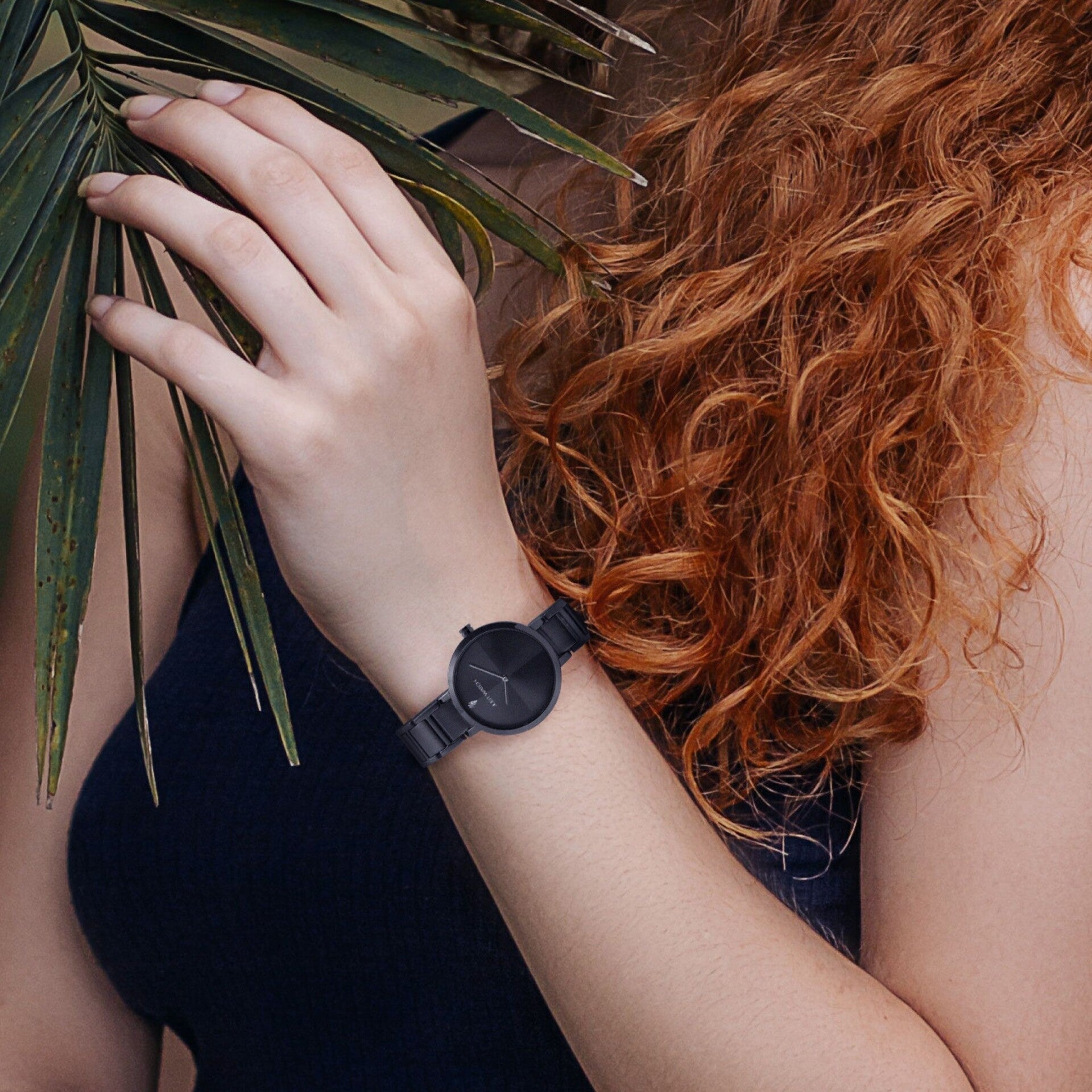 Die Just Watch Damenuhr "Alani" überzeugt durch ihr stilvolles Design und feine Details, die für einen glänzenden Auftritt sorgen. Das IP-beschichtete Metallgehäuse mit einem Durchmesser von 34 mm wird durch ein zartes Edelstahlarmband ergänzt, das in verschiedenen edlen Farbtönen – Blau, Gold, Schwarz oder Silber – erhältlich ist.
