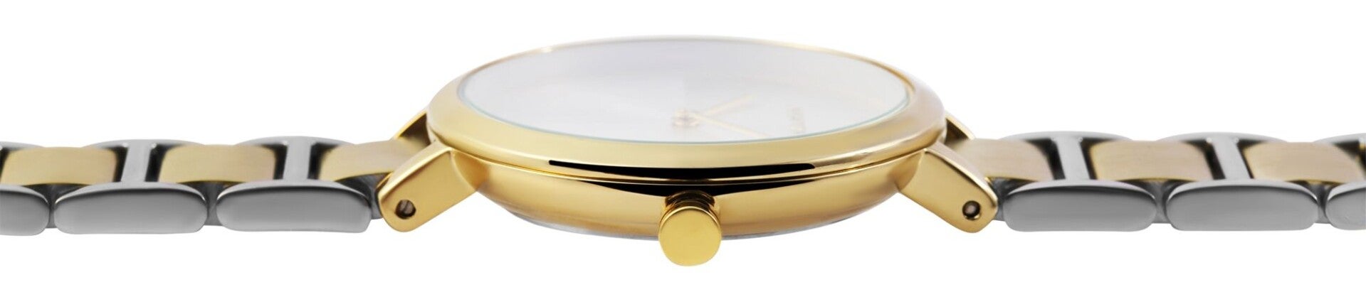 Mit einer Gesamtlänge von 20,5 cm und einer filigranen Bandbreite von 11 mm bietet die Uhr ein angenehmes Tragegefühl. Die Edelstahl-Faltschließe sorgt für sicheren Halt im Alltag. Dank einer Wasserdichtigkeit bis 3 Bar eignet sich die Uhr für alltägliche Situationen wie Händewaschen oder Regen.