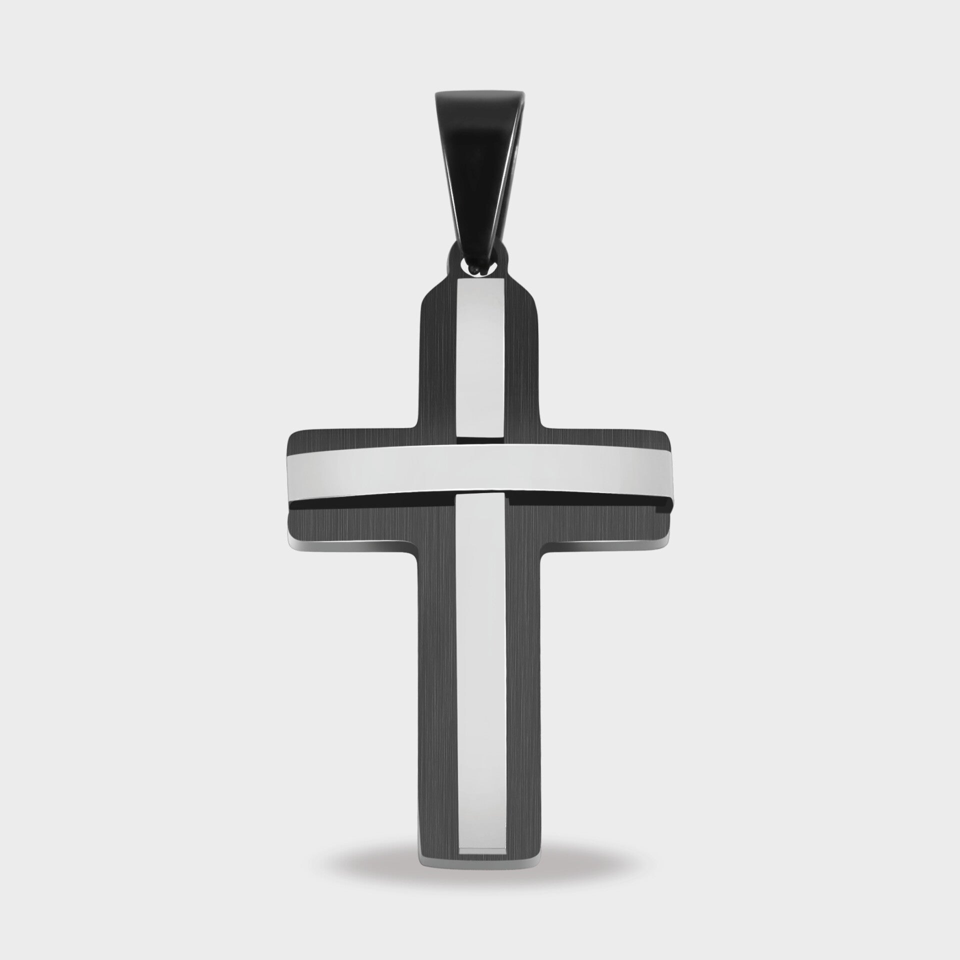 Das zweifarbige Kreuzdesign kombiniert mattierte und glänzende Elemente im sogenannten Twin-Look, bei dem ein zweites Kreuz dezent hervorgehoben auf dem Hauptkörper sitzt. Durch die präzise ionenplattierte Oberfläche erhält der Anhänger seinen edlen Glanz und ist gleichzeitig widerstandsfähig gegenüber äußeren Einflüssen. Mit einer Länge von 38 mm, einer Breite von 22 mm und einer Stärke von 5 mm ist dieser Anhänger ein auffälliges, aber dennoch stilvolles Statement.
