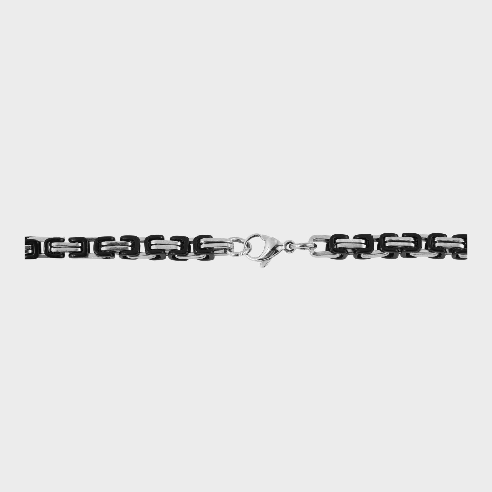 Das Zusammenspiel aus silberfarbenen und schwarzen Elementen sorgt für einen modernen Kontrast, der sowohl zu sportlichen als auch zu eleganteren Outfits passt. Die Tyllan-Kette steht für selbstbewussten Stil – egal ob als Einzelstück oder in Kombination mit einem Anhänger getragen.