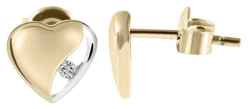 333/- o. 375/- Gold "Clara" Herz-Ohrstecker mit Zirkoniabesatz, bicolor