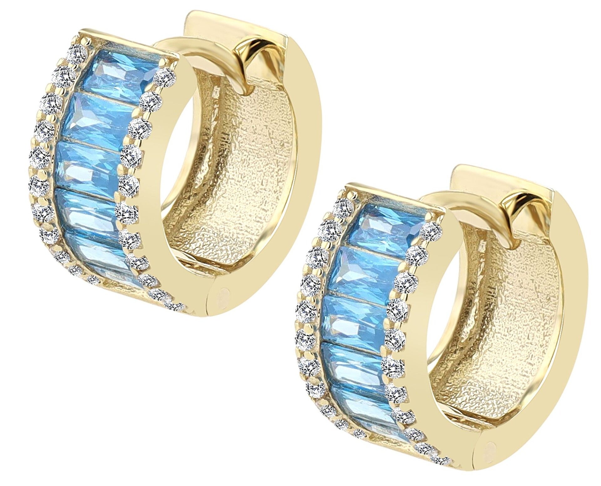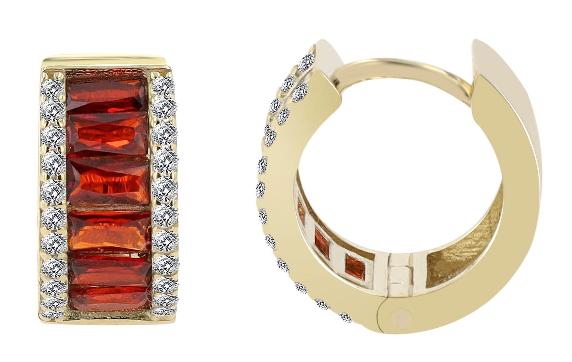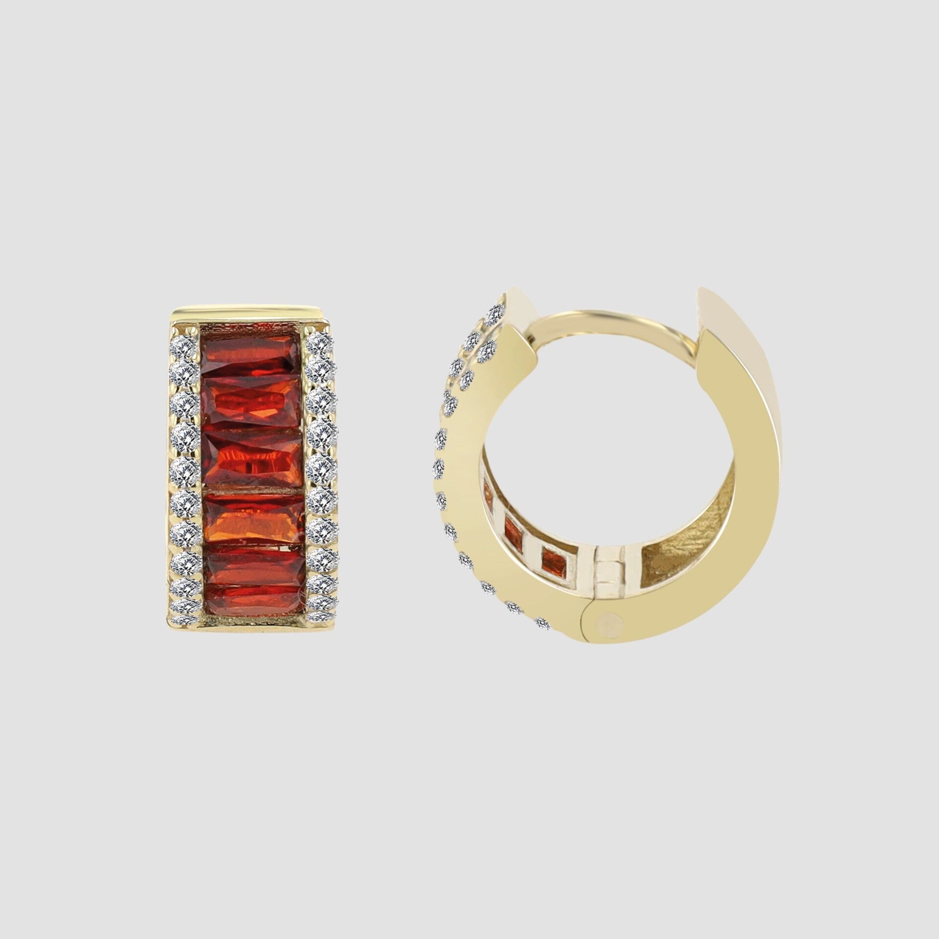 Die Besonderheit dieser Creolen liegt im kunstvoll gestalteten Zirkoniabesatz: Rund geschliffene, funkelnde Zirkoniasteine zieren die äußeren Ränder und verleihen den Ohrringen ein klassisches Funkeln. Im Inneren der Creolen setzen wahlweise rote oder blaue, eckige Zirkoniasteine kraftvolle Farbakzente, die einen faszinierenden Kontrast zum Gold bilden und das Design modern und lebendig wirken lassen.