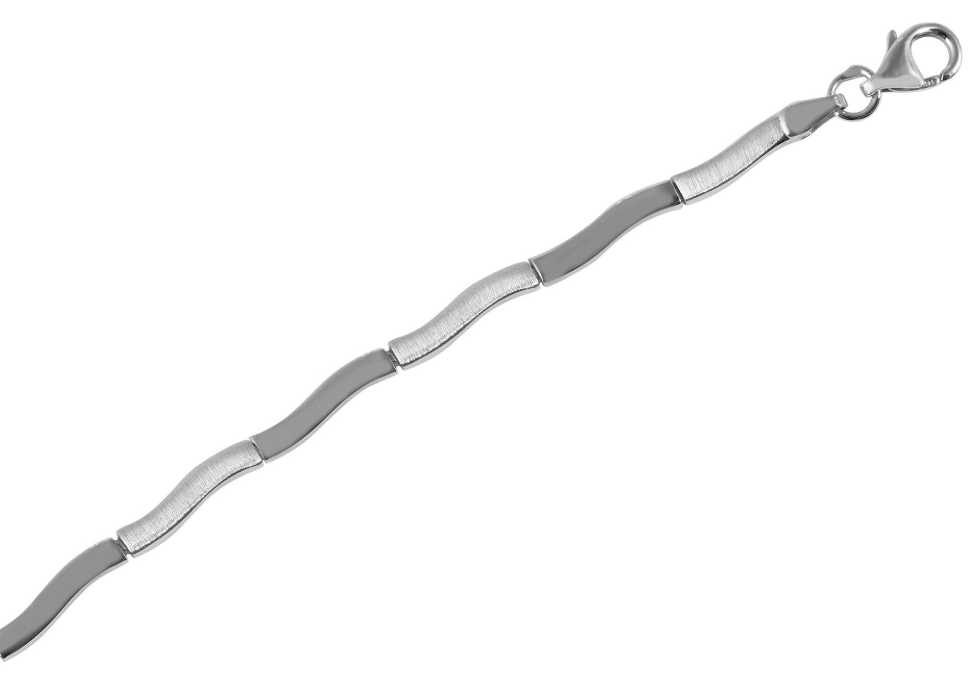 Die geschwungenen, fließend ineinander übergehenden Elemente verleihen der Kette eine besonders harmonische Wirkung. Das Wechselspiel aus mattierten und polierten Flächen sorgt für eine subtile, aber wirkungsvolle Optik, die jedem Dekolleté schmeichelt.