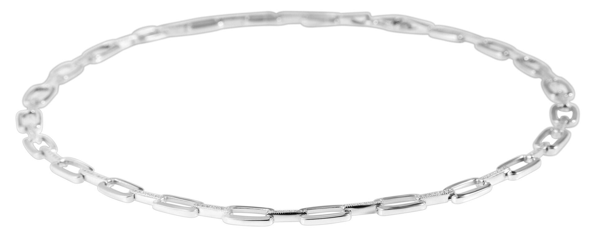 Mit einer Länge von 45 cm, einer Breite von 7 mm und einer Stärke von 2 mm liegt die Kette angenehm am Hals und bietet gleichzeitig eine ausdrucksstarke Optik. Die rechteckigen Schmuckelemente mit abgerundeten Ecken fließen harmonisch ineinander und erzeugen ein edles Gesamtbild. Zwischen den Elementen befinden sich fein eingefasste Zirkoniasteine, die das Licht einfangen und der Kette ein funkelndes Finish verleihen.