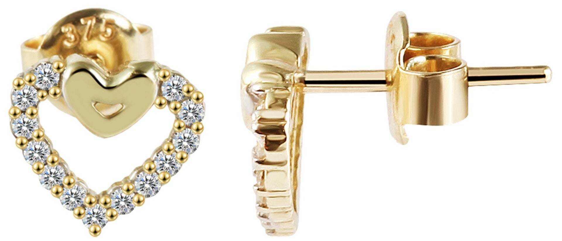 333/- o. 375/- Gold "Oprah" Ohrstecker mit Zirkoniabesatz, Herz, Gelbgold
