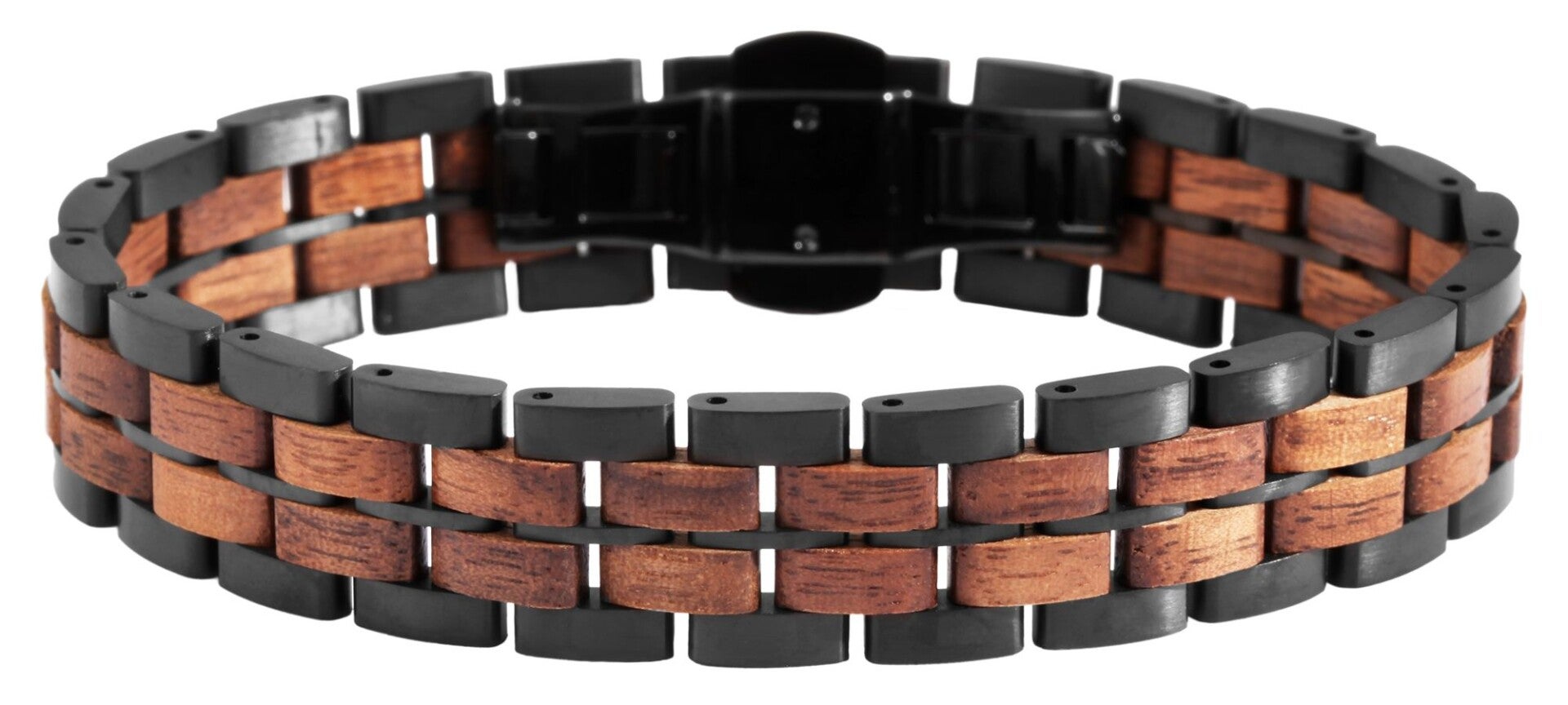 Raptor Armband aus Edelstahl und Holz, kürzbar