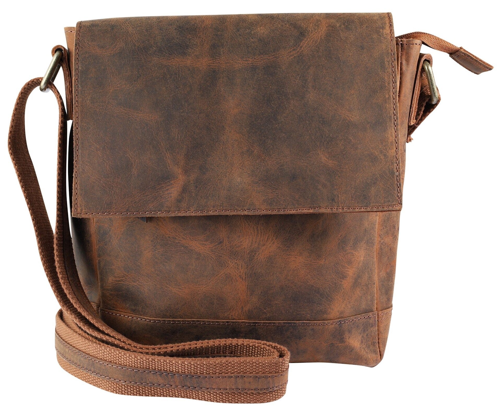 Leonardo Verrelli, Echtleder Umhängetasche, verstellbarer Riemen, Überschlag mit Magnetverschluss