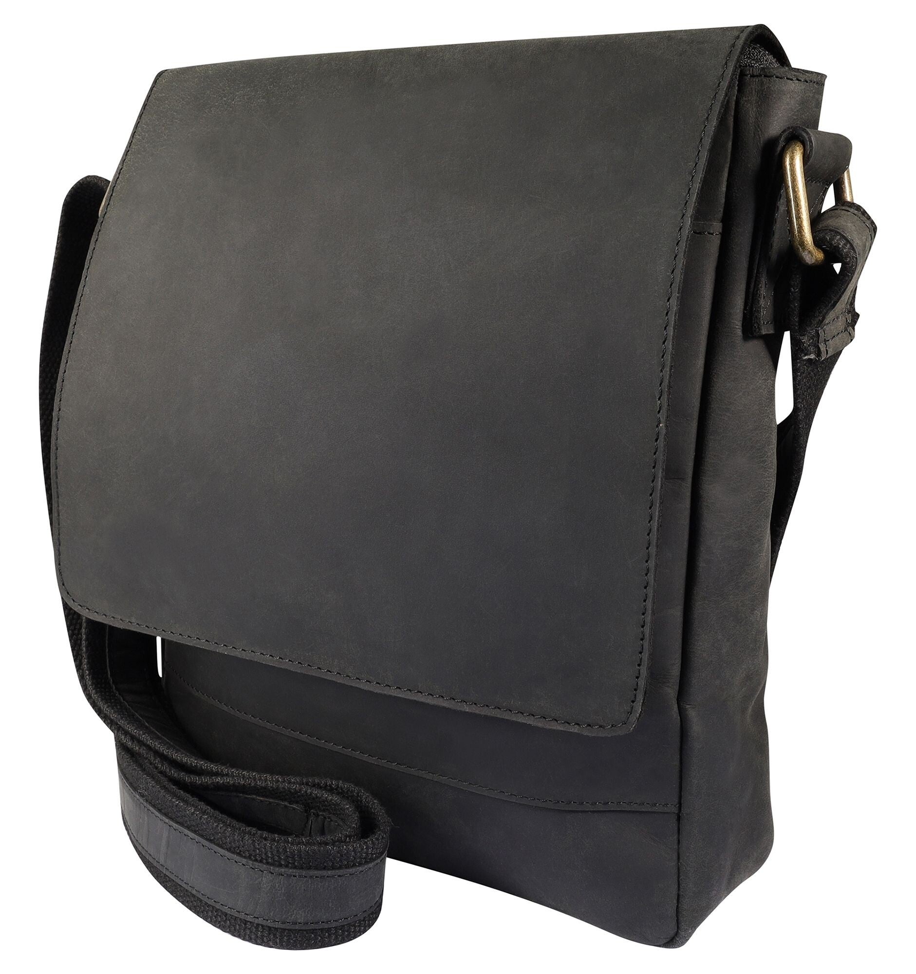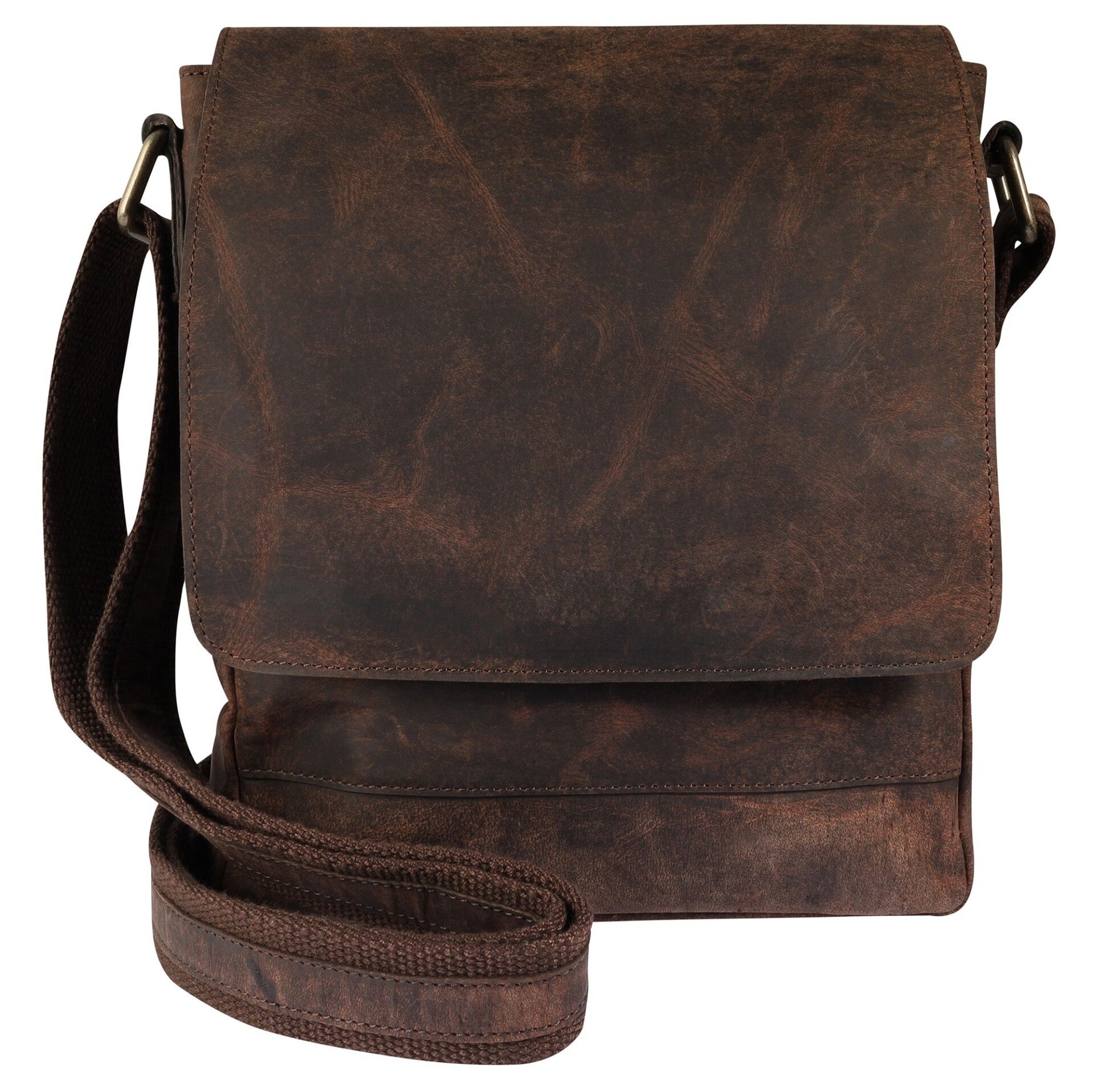 Leonardo Verrelli, Echtleder Umhängetasche, verstellbarer Riemen, Überschlag mit Magnetverschluss