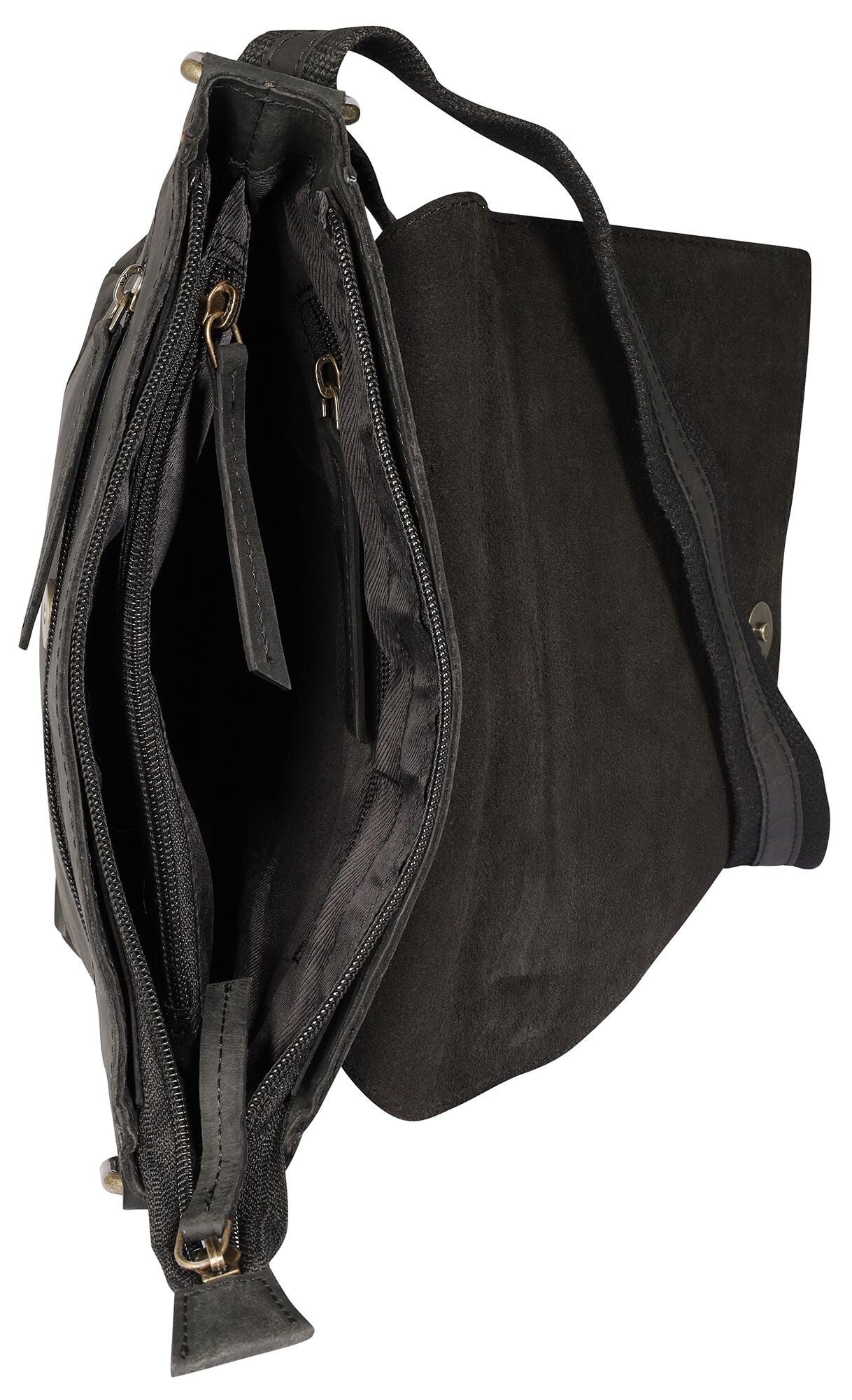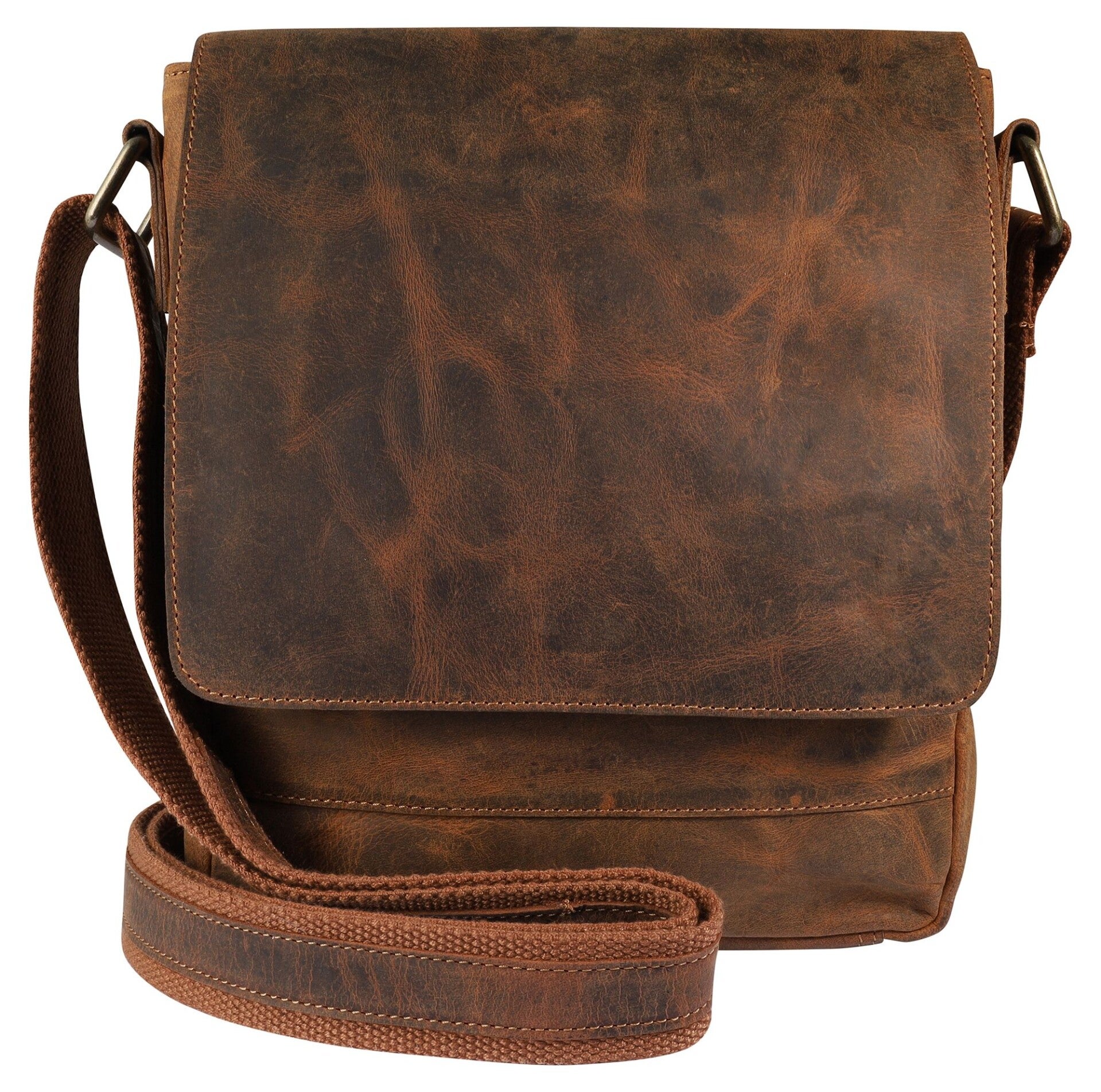 Diese kompakte Echtleder-Umhängetasche aus der Hunter-Kollektion von Leonardo Verrelli überzeugt durch klare Linien, hochwertige Verarbeitung und funktionales Design. Das robuste Leder mit charakteristischer Oberfläche verleiht der Tasche einen natürlichen Look, während der gerade, dezente Überschlag mit Magnetverschluss für ein komfortables Handling sorgt.