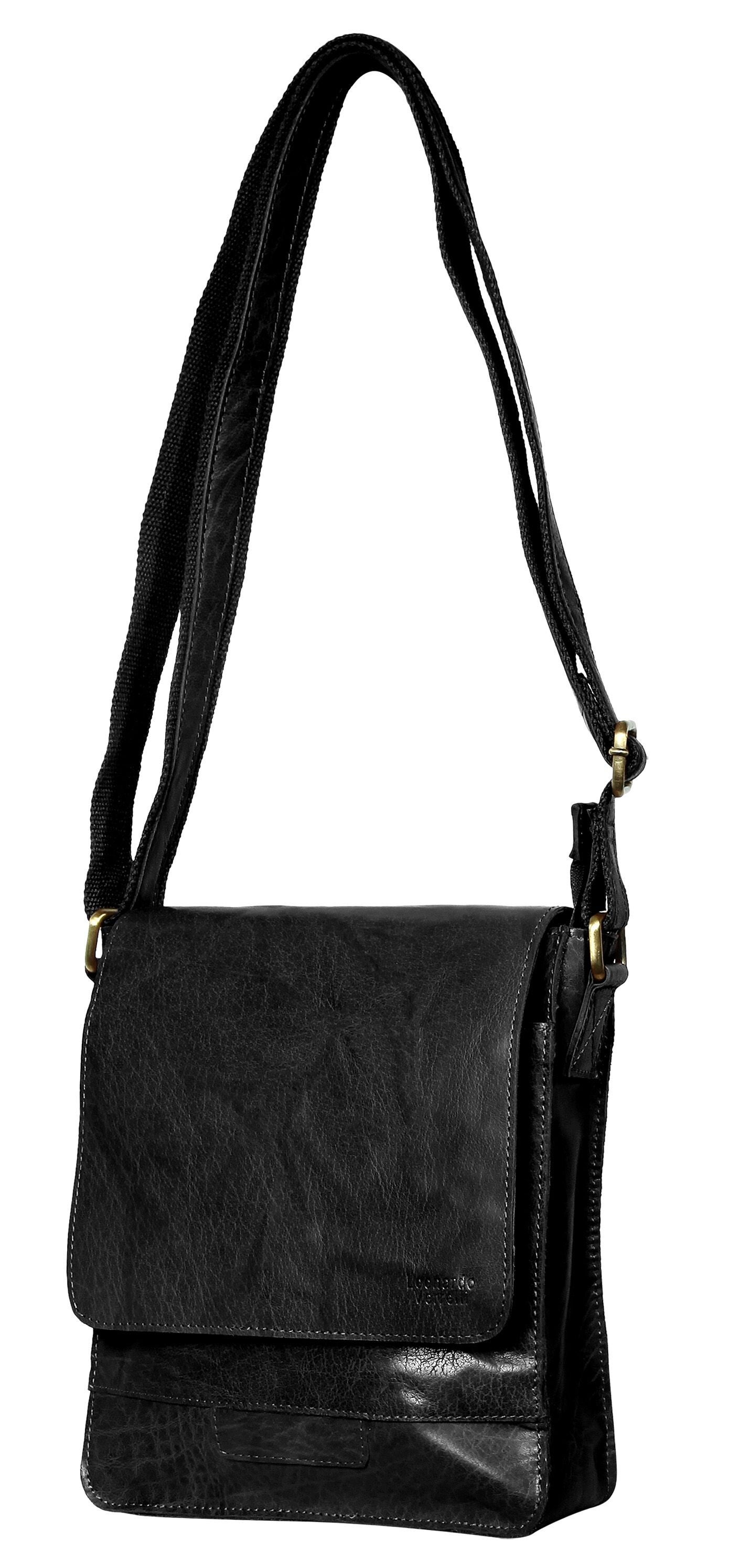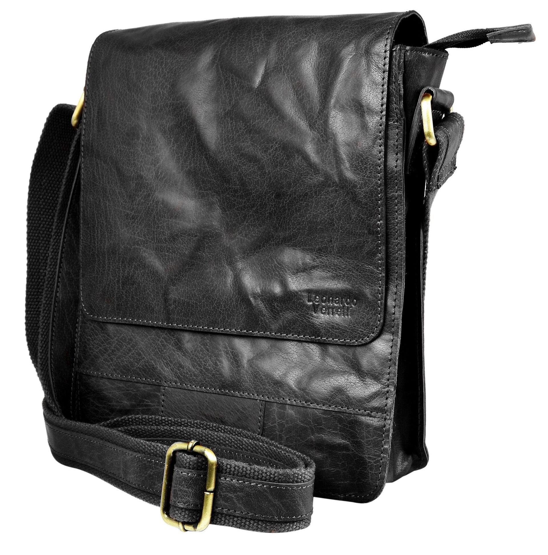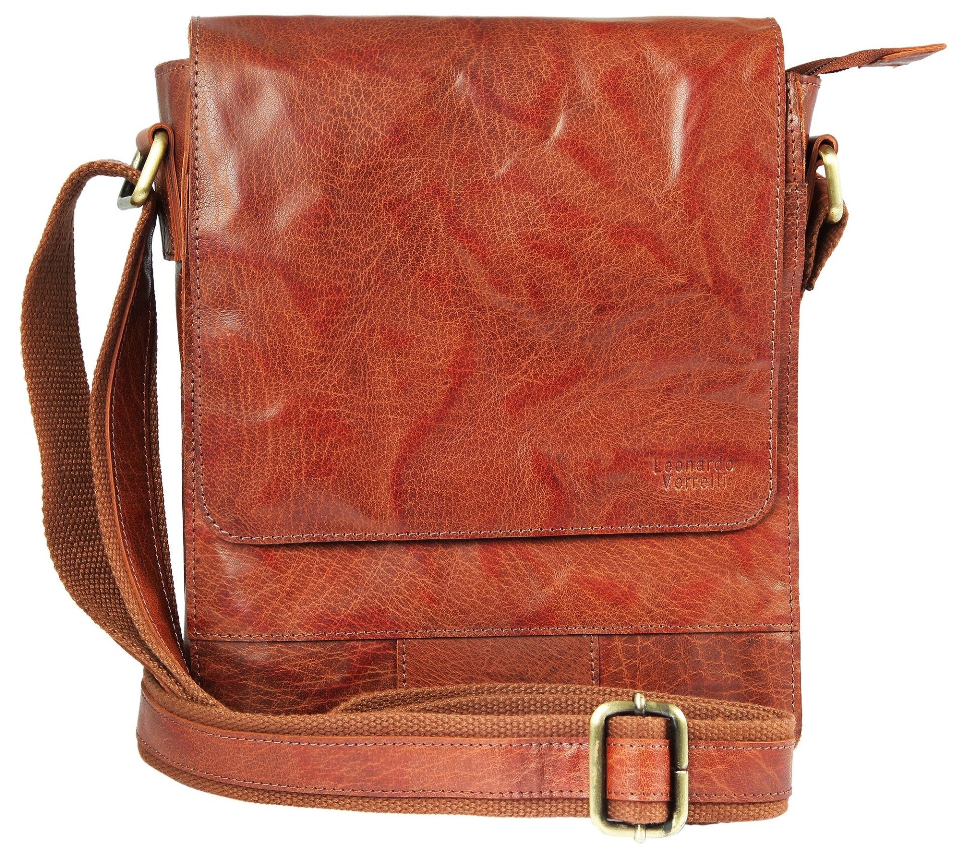 Leonardo Verrelli, Echtleder Umhängetasche, verstellbarer Riemen, Überschlag mit Magnetverschluss