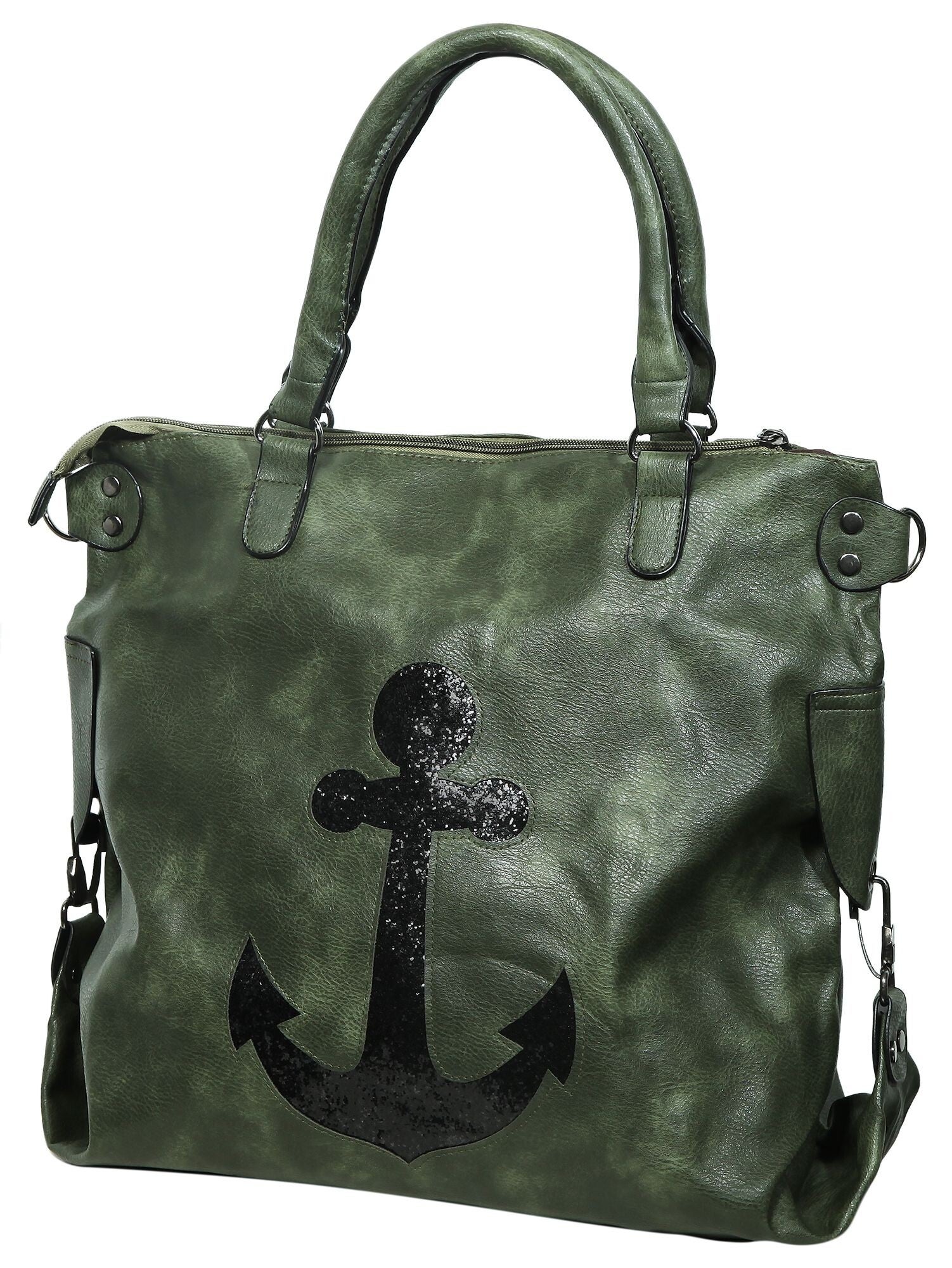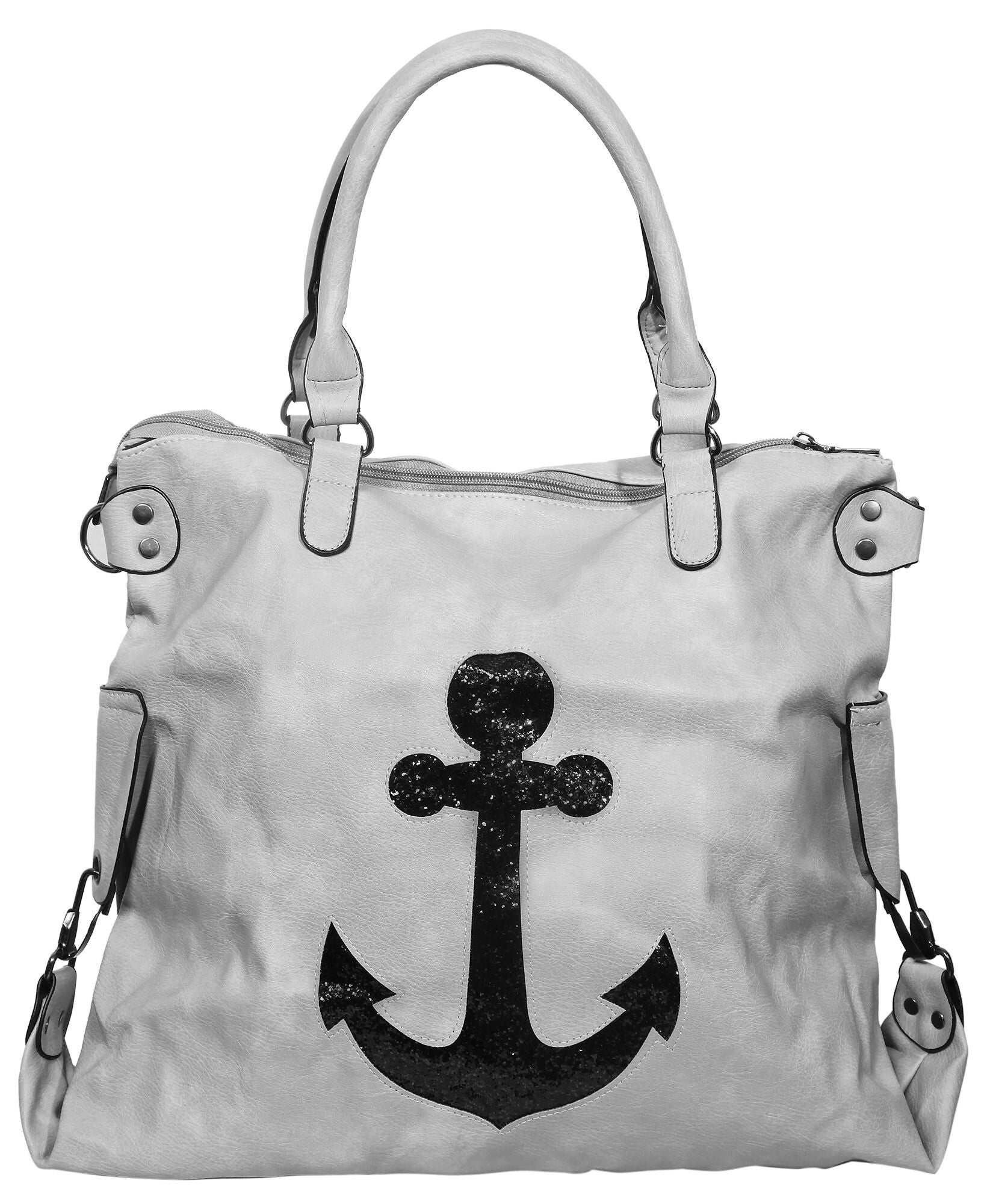 Maritime Schultertasche, Tasche mit Ankermotiv, Damen Umhängetasche maritim, Cham Cham Tasche, Crossbody Bag Lederimitat, stylische Glitzertasche, große Damenhandtasche, maritime Handtasche Damen