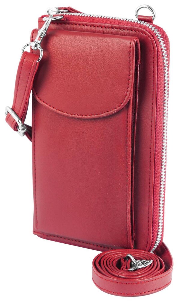 Akzent Handyumhängetasche mit Geldbörse aus Echtleder, geeignet für iPhone 15