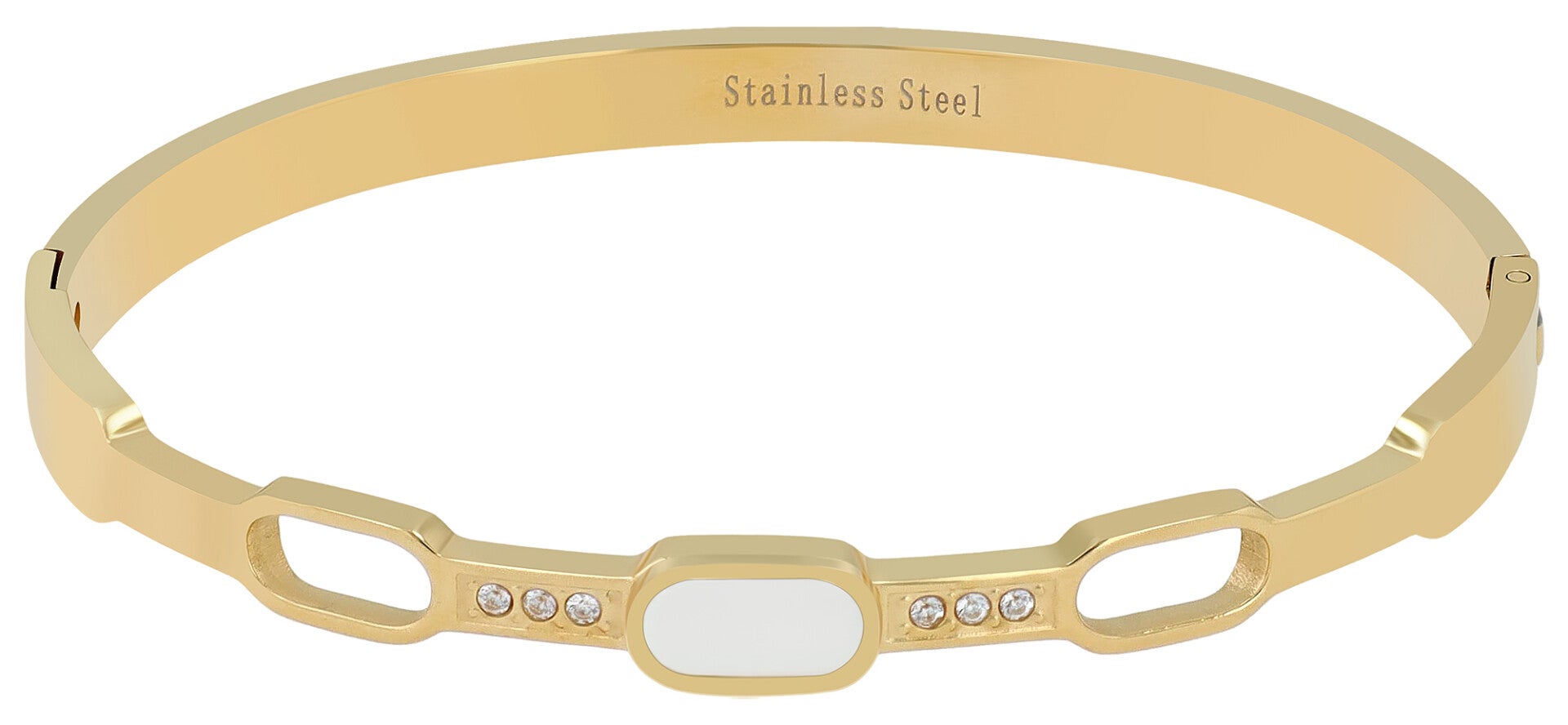 "Elysia" Edelstahl Armreifen, Similibesatz/ Perlmutt