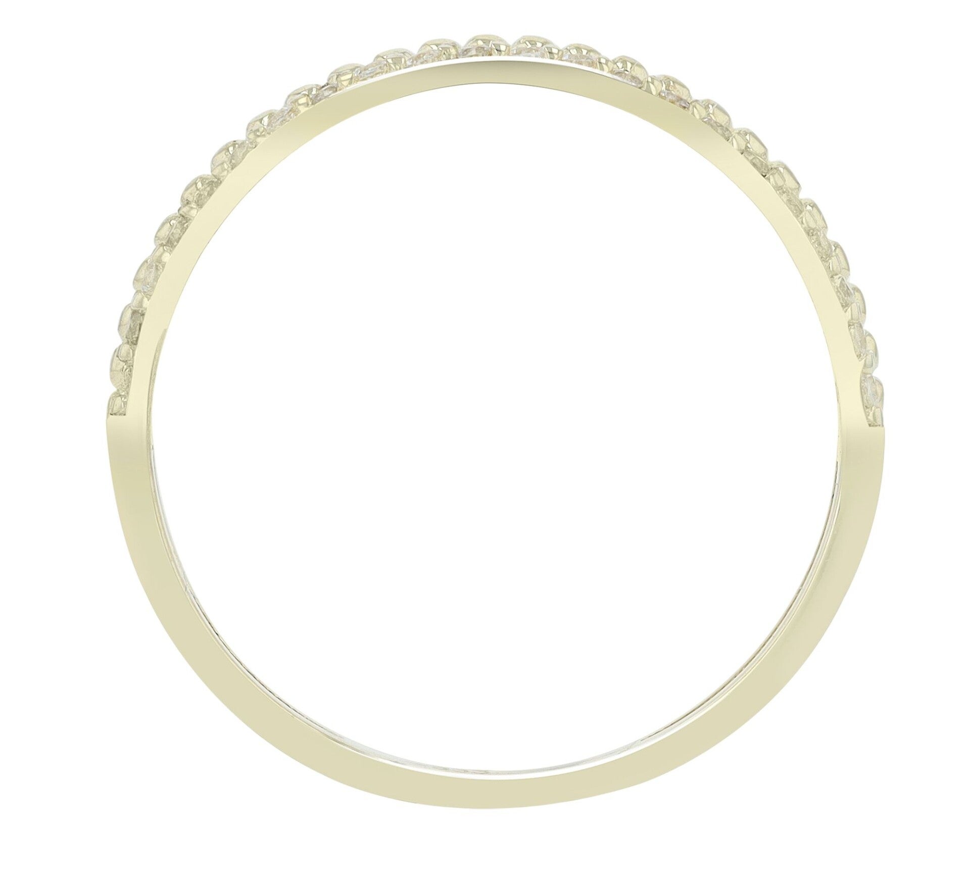 Der harmonische Kontrast zwischen dem strahlend weißen Besatz und dem warmen Goldton unterstreicht den eleganten Charakter dieses Schmuckstücks. Mit einer Breite von ca. 3 mm und einer zarten Höhe von nur 1 mm sitzt der Ring angenehm leicht am Finger – ein edles Accessoire für jeden Tag oder den besonderen Moment.