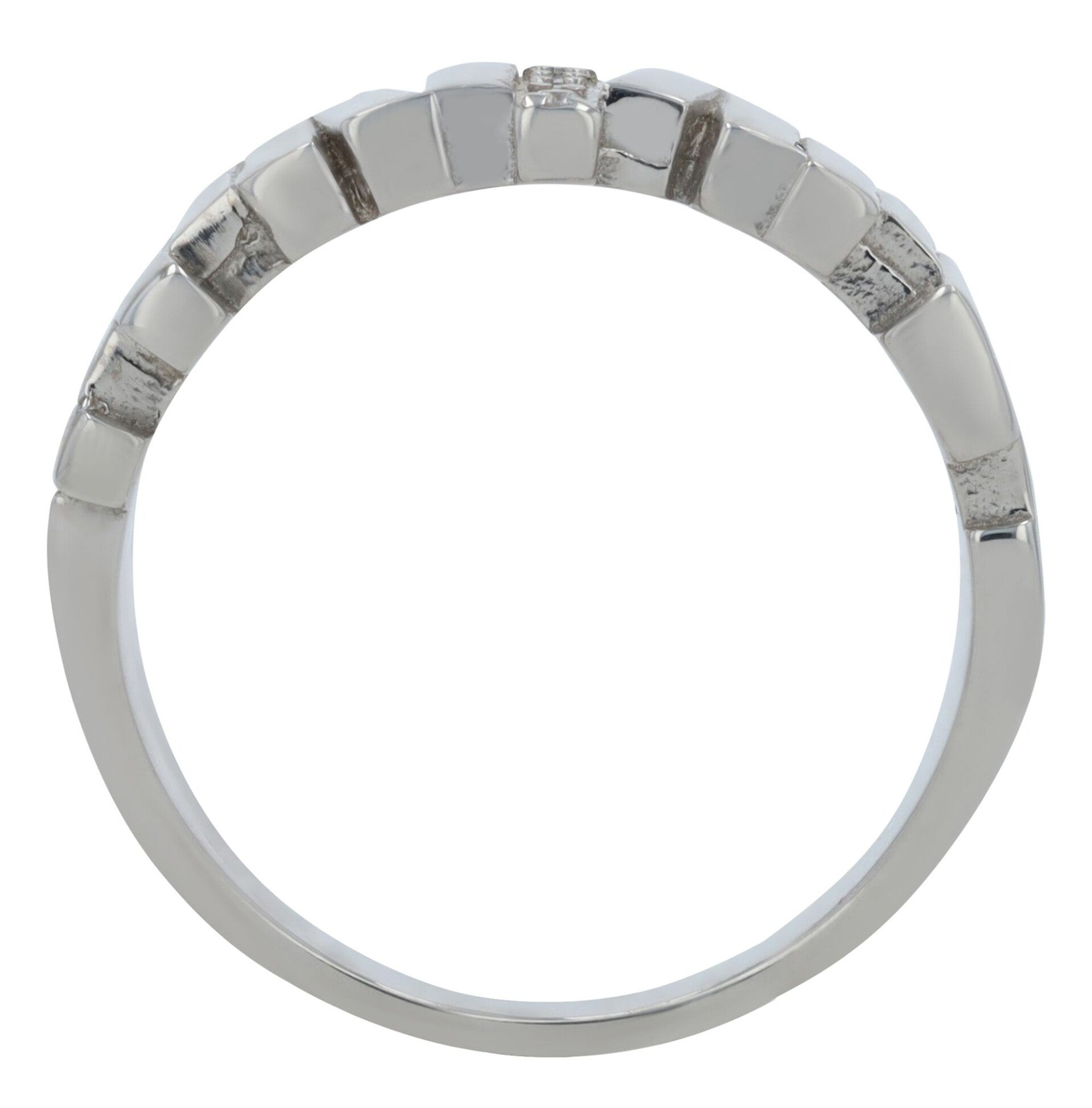 Das abstrakte Design der Ringschiene ist das Highlight des Rings: verschieden lange, versetzt angeordnete Elemente erzeugen eine einzigartige, harmonische Struktur. Veredelt wird die moderne Form durch fein eingearbeitete Zirkonia, die dem Ring ein elegantes Funkeln verleihen.