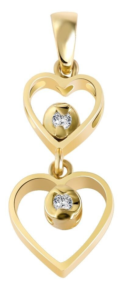Der edle Herzanhänger aus 375er (9 Karat) Gelbgold begeistert durch sein romantisches Design mit zwei übereinander angeordneten Herzen. Jedes Herz ist mit einem echten Diamanten besetzt, was dem Schmuckstück eine besonders hochwertige und funkelnde Note verleiht. Der warm schimmernde Goldton harmoniert perfekt mit dem feinen Steinbesatz und macht diesen Damenanhänger mit Diamant zu einem stilvollen Blickfang.