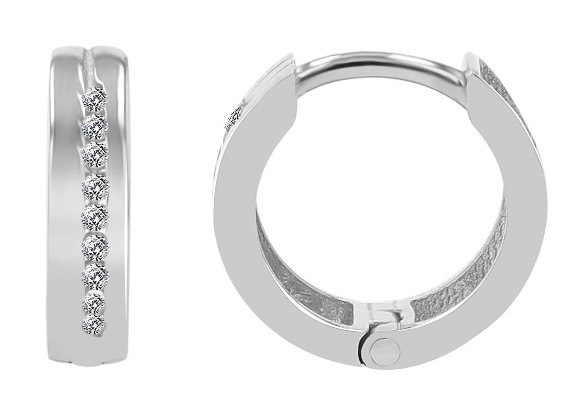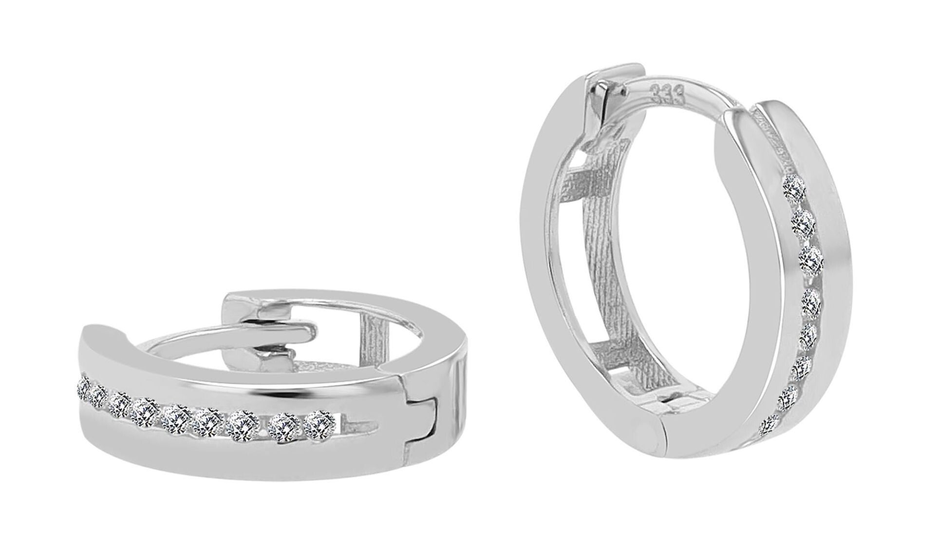 333er/ Gold "Calliope" Klapp-Creolen, Weißgold, 8 Karat, Zirkoniabesatz