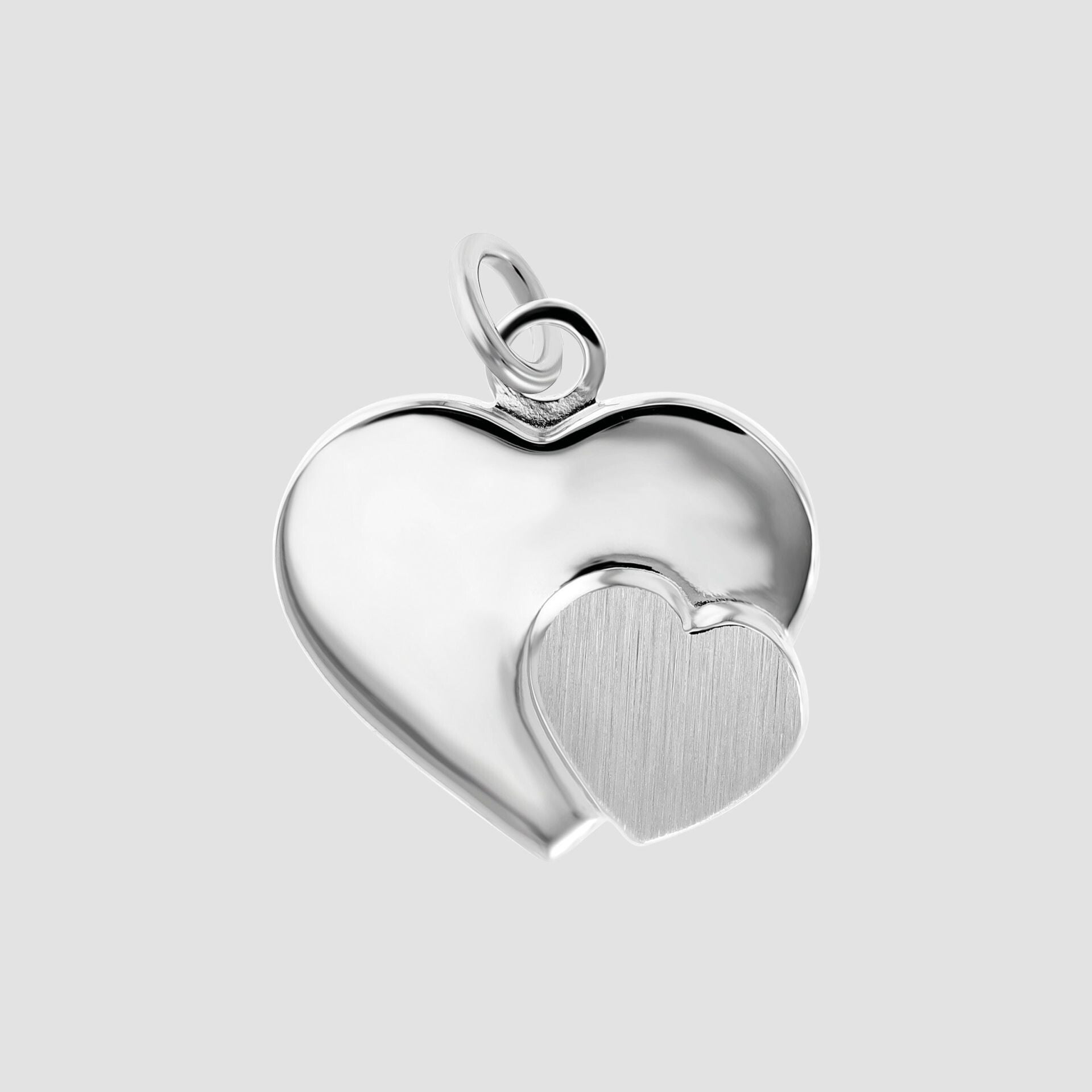 Ein großes, glänzend poliertes Herz wird durch ein kleineres, dezent mattiertes Herz ergänzt – ein liebevoll gestaltetes Detail, das diesem Schmuckanhänger eine einzigartige Optik verleiht. Zudem ist der Anhänger beidseitig gravierbar, was ihn zu einem perfekten Geschenk für Herzensmenschen macht.