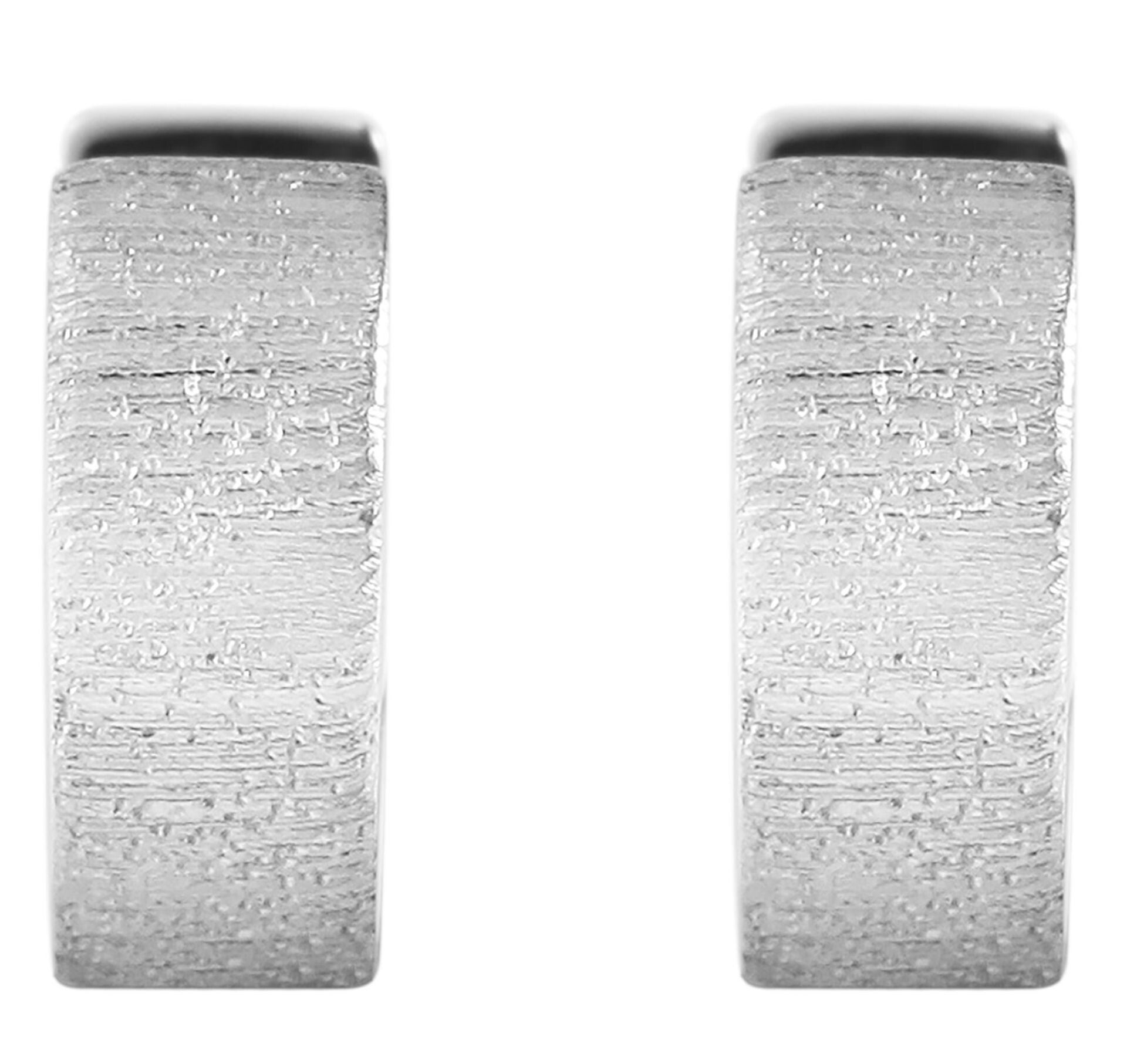 Besonders ins Auge fällt die strukturierte Oberfläche der Creolen: Eine leicht angeraute, matt-glänzende Optik verleiht den Ohrringen Charakter und eine moderne, zugleich elegante Ausstrahlung. Der handliche Klappverschluss ermöglicht ein komfortables Anlegen und sorgt für sicheren Halt.
