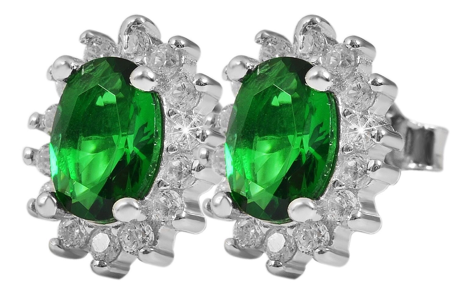 „Diana“ 925/- Echt Silber Ohrstecker – Zeitlose Eleganz mit grünem Zirkonia in funkelnder Krappenfassung