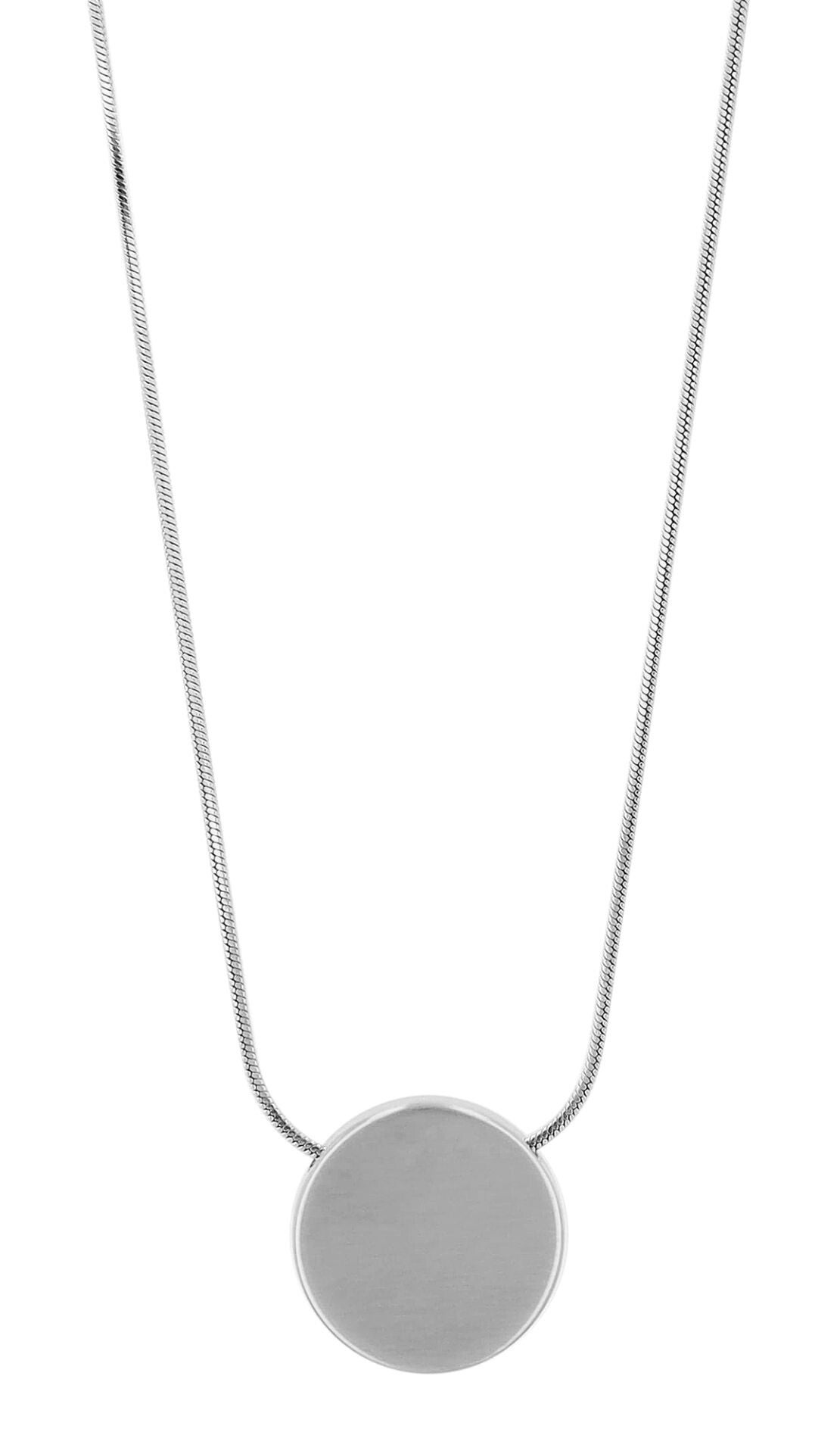 Die Edelstahlkette „Abina“ von Akzent vereint filigranes Design mit persönlicher Bedeutung. Gefertigt im eleganten Schlangenmuster, überzeugt diese Damenkette durch ihren zeitlosen Look und hohen Tragekomfort. Der absolute Blickfang ist der runde Gravuranhänger, der sich ideal für individuelle Botschaften, Namen oder Daten eignet.