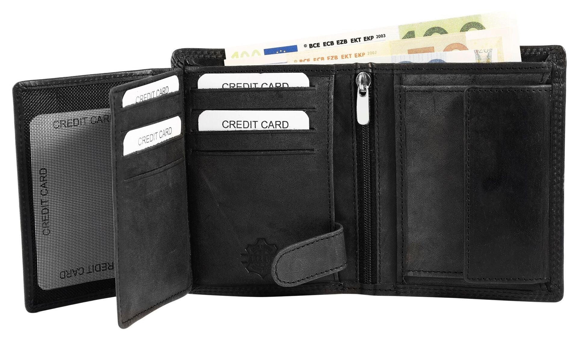 Akzent Echtleder Geldbörse mit RFID-Schutz – Hochformat mit Segelschiff-Prägung, schwarz