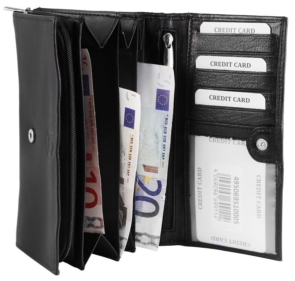 Akzent Damen Geldbörse aus Echtleder – Schwarz, Format 17 x 10 cm