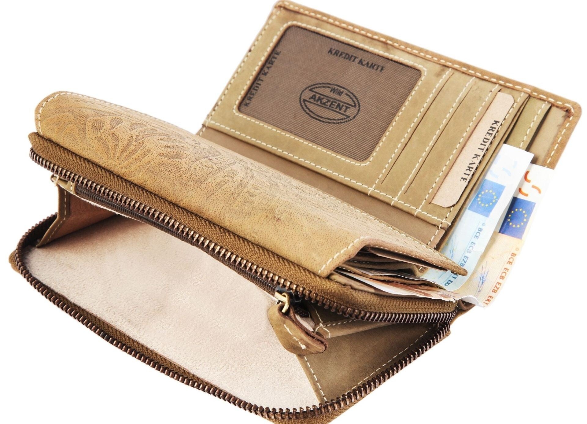 #Akzent #DamenGeldbörse #Echtleder #Wildleder #Blumenprint #Modisch #Portemonnaie #Rabia #Veloursleder #Braun #GeldbörseMitReißverschluss #Kartenfächer