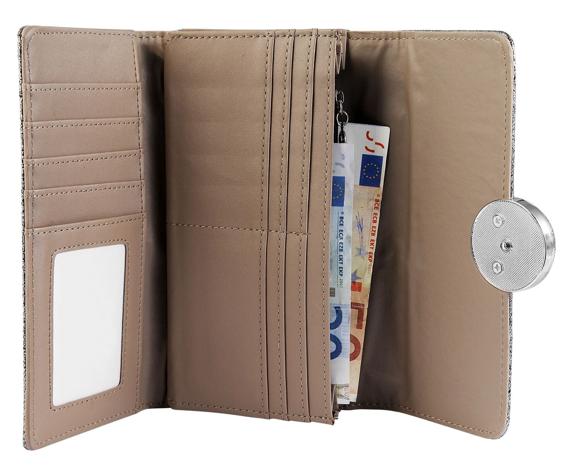 #ChamCham #DamenGeldbörse #Lederimitat #Silber #Grau #Druckknopf #Praktisch #Elegant