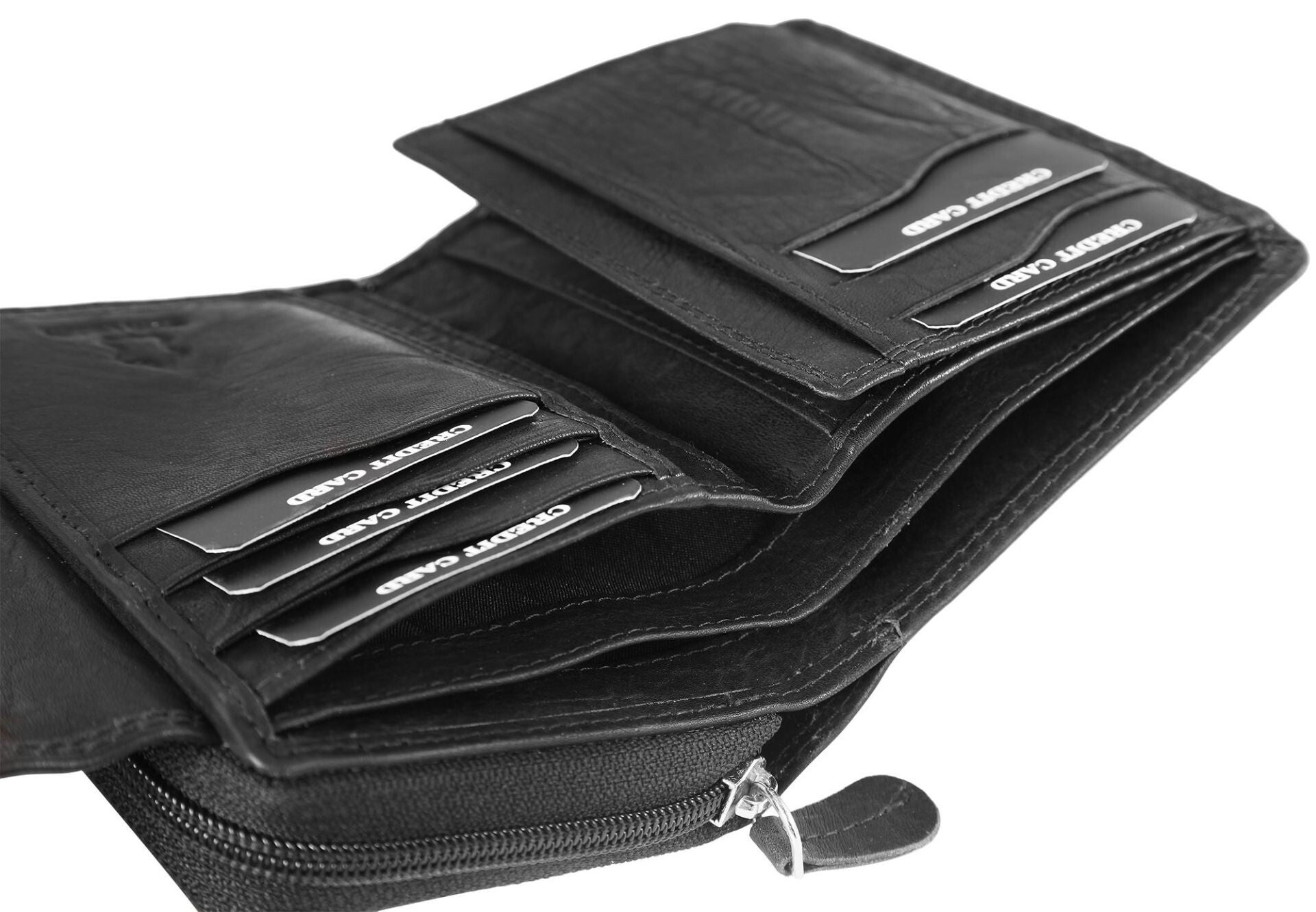 Das Innenfutter aus widerstandsfähigem Synthetik und die präzise verarbeitete Doppelnaht in Schwarz garantieren eine lange Lebensdauer und Stabilität. Die praktische Aufteilung bietet viel Platz: Insgesamt 14 Kreditkartenfächer, 2 Geldscheinfächer, 3 Münzgeldfächer, 5 Einsteckfächer sowie ein äußeres Reißverschlussfach sorgen für optimale Organisation Ihrer Finanzen und Dokumente.