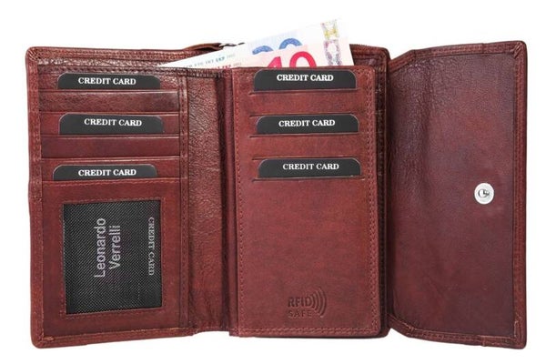 #LeonardoVerrelli, #EchtlederGeldbörse, #RFIDSchutz, #DamenPortemonnaie, #BrauneGeldbörse, #ModischUndSicher, #Rindsleder, #PlatzwunderPortemonnaie, #Geschenkidee