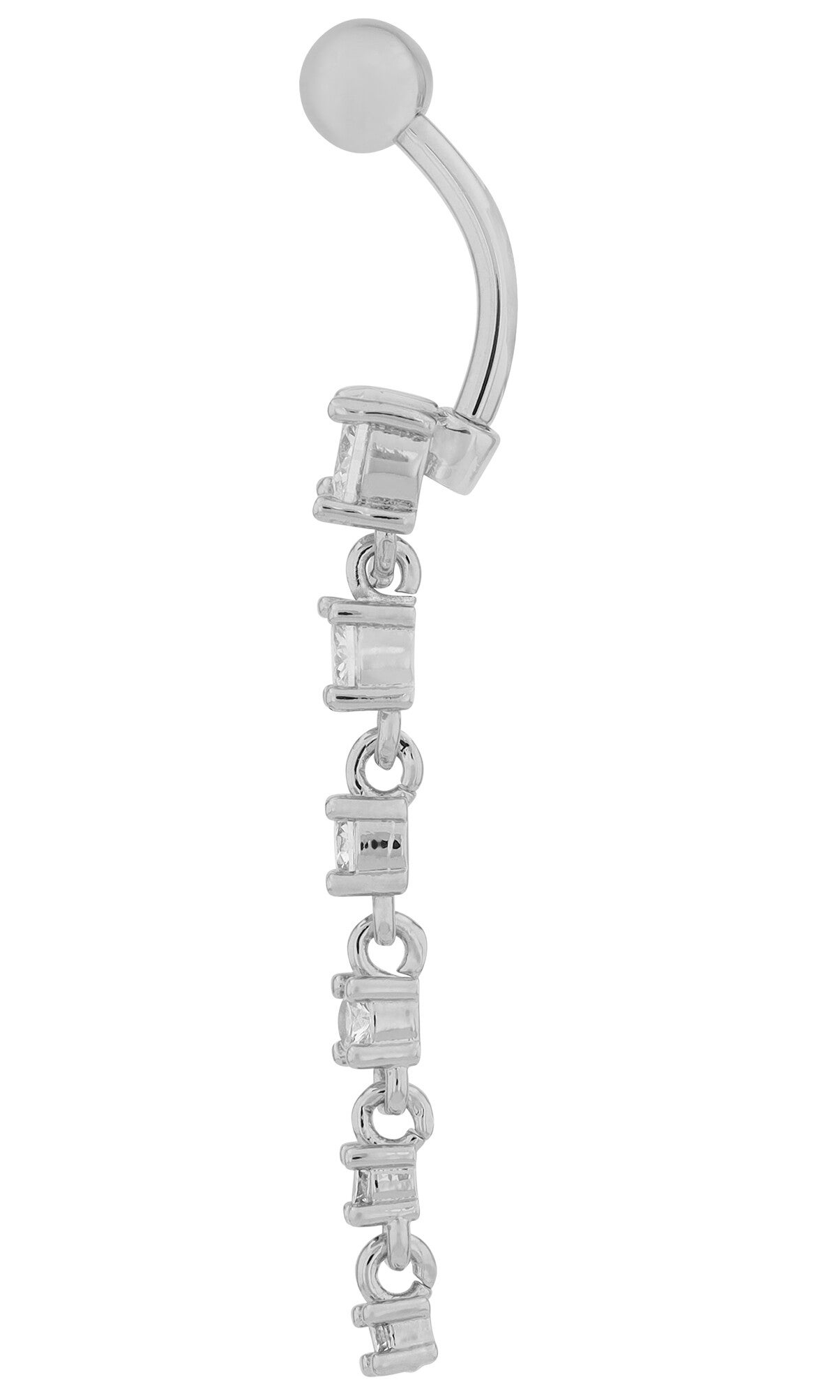 Akzent Damen Bauchnabelpiercing „Melania“ – Silberfarbene Eleganz mit fließenden Zirkonia