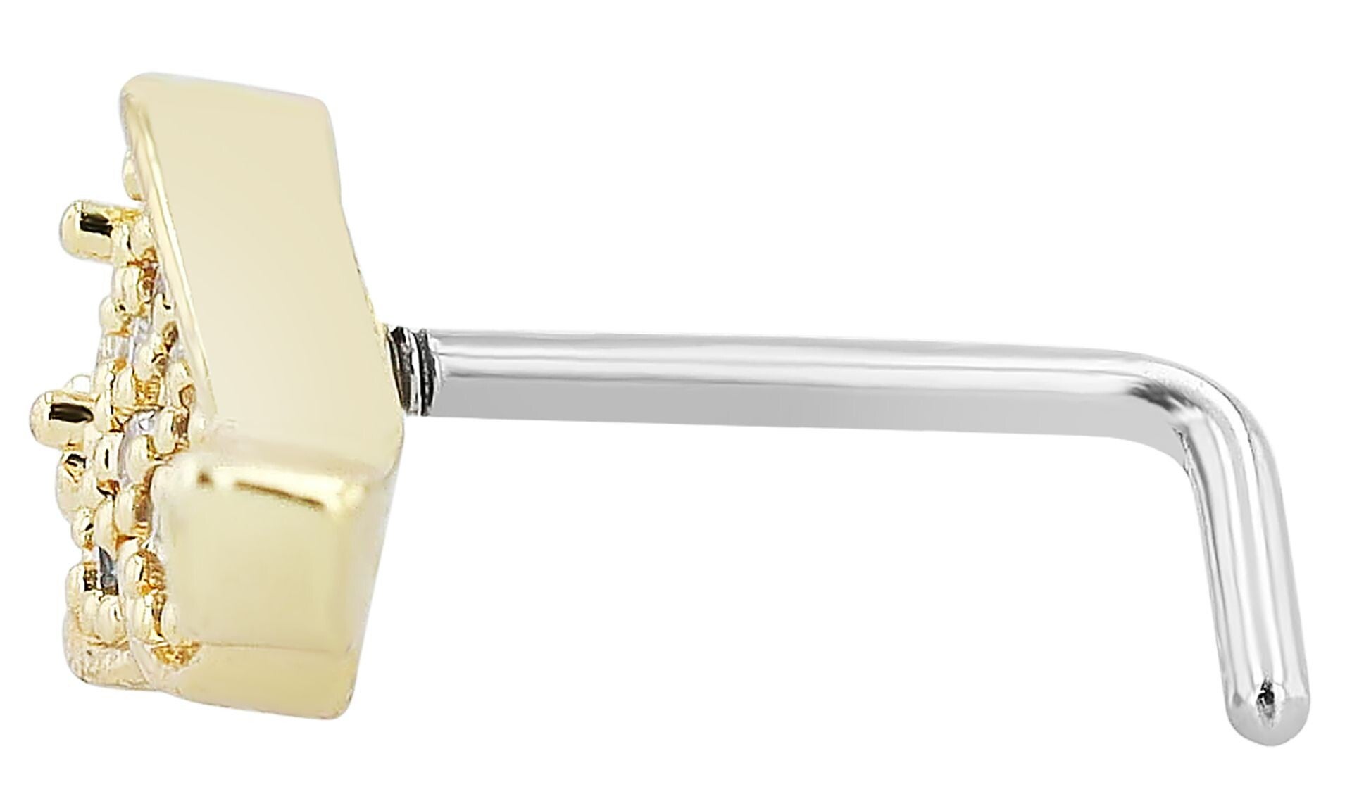 Der Stab hat einen Durchmesser von 0,9 mm und eine Stablänge von 7,5 mm und ist in der beliebten L-Form ausgeführt, die für einen sicheren Sitz und komfortables Tragen sorgt. Mit einer Gesamtlänge von 1,05 cm ist „Panja“ ein dezentes und zugleich elegantes Accessoire für Damen.
