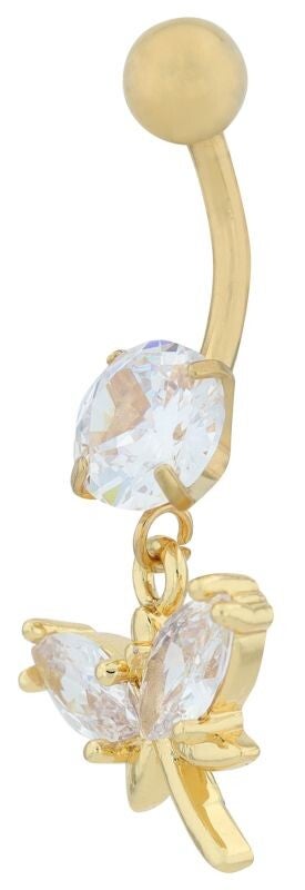 Svenja" Edelstahl-Bronze Bauchnabelpiercing, Stablänge 11 mm/ Stabstärke 2 mm, Libelle, Zirkonia, goldfarben