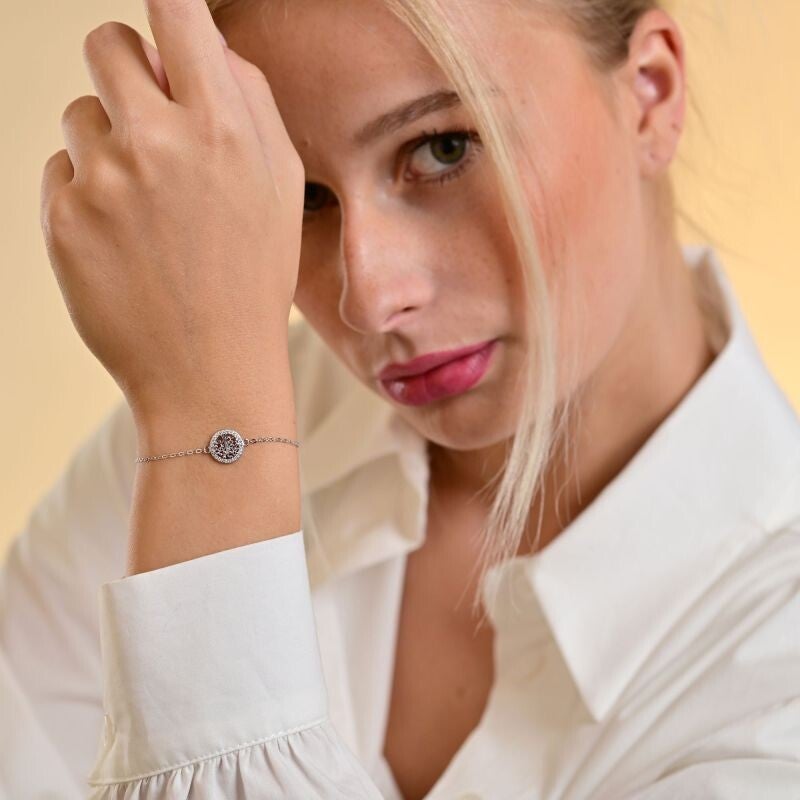 Akzent Damenarmband „Gordana“ – 925/- Echt Silber, rhodiniert, Lebensbaum mit Zirkoniabesatz
