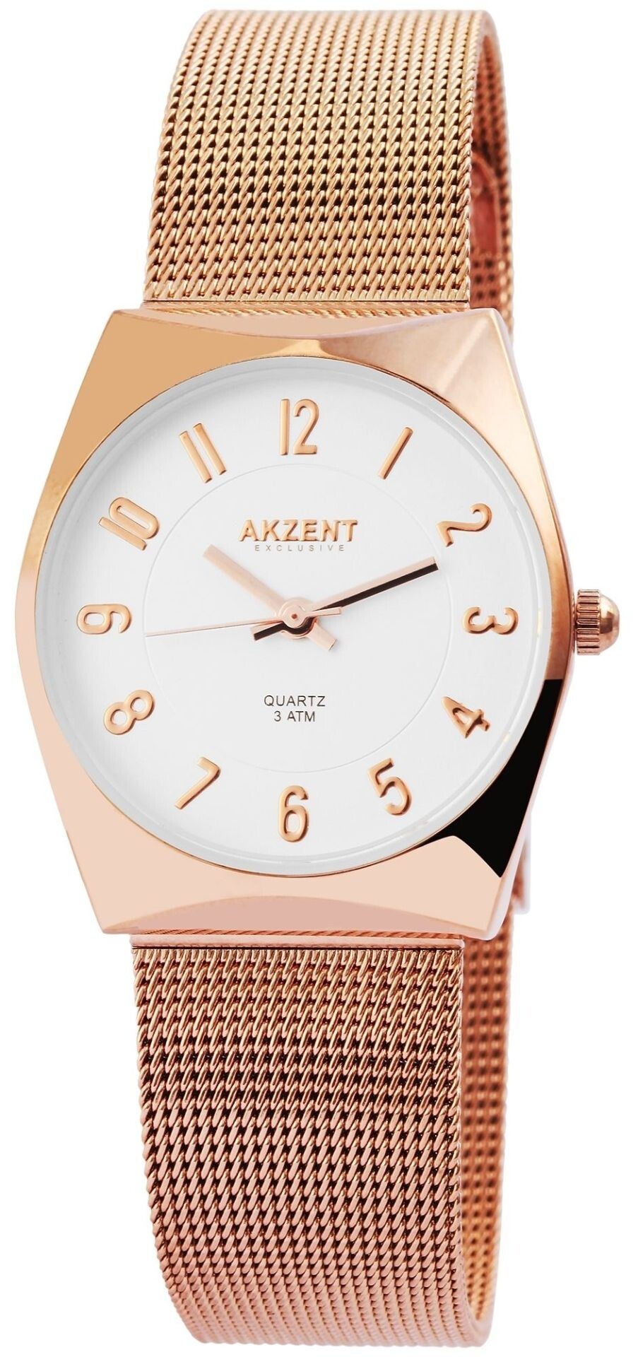 #Roségold, #Damenuhr, #AkzentExclusive, #Meshband, #Edelstahl, #Quarzuhr, #ZifferblattWeiß, #ModischeUhr, #ArmbanduhrDamen, #Milaneseband