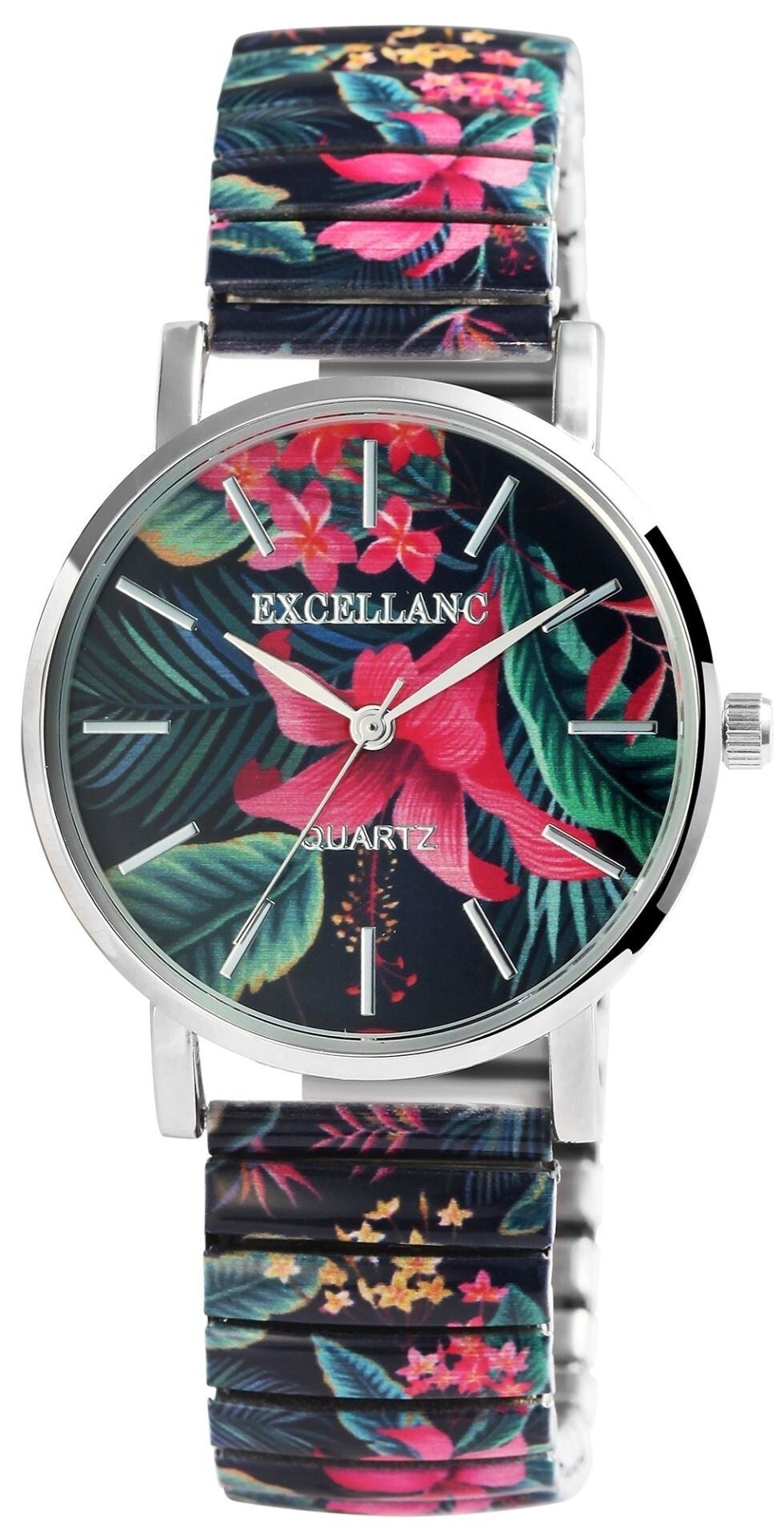 Excellanc Damenuhr mit Edelstahlzugband, silberfarbig/mehrfarbig – Farbenfroher Blickfang
