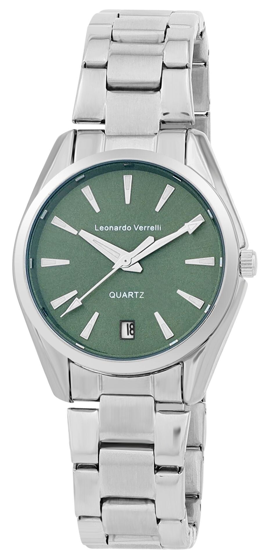 Die Leonardo Verrelli Damenuhr besticht durch ihr schlichtes und modernes Design in stilvollem Bicolor. Das 34 mm große runde Metallgehäuse mit Edelstahlboden verbindet Eleganz und Robustheit perfekt. Das elegante Edelstahl-Gliederarmband mit einer Breite von 18 mm schließt sicher und bequem mit einer praktischen Butterfly-Schließe. Die Gesamtlänge der Uhr beträgt 20 cm und sorgt für einen angenehmen Sitz am Handgelenk.