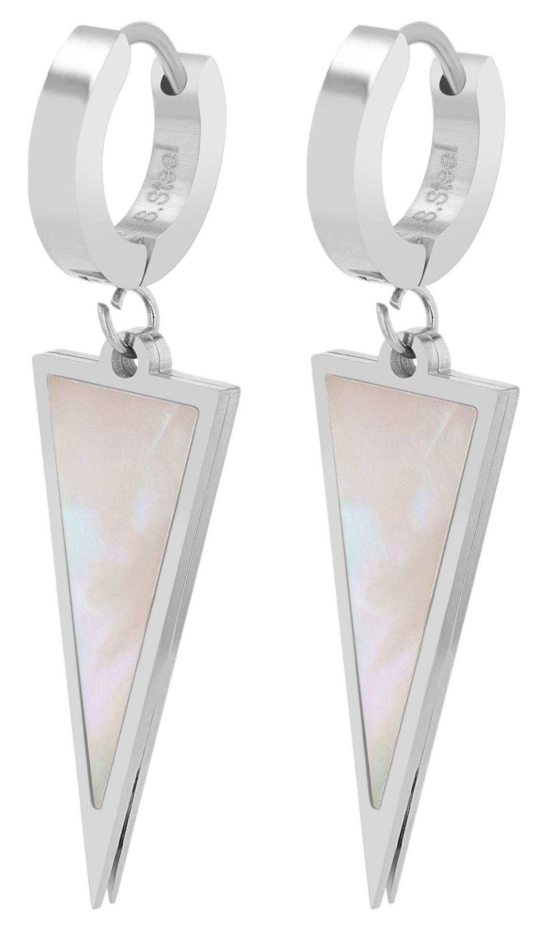 Die Creolen Faris von Akzent vereinen modernes Design mit zeitloser Eleganz. Gefertigt aus hochwertigem Edelstahl, überzeugen sie durch ihre Langlebigkeit und stilvolle Verarbeitung. Der subtile Rahmen mit einem Innendurchmesser von 9 mm und einer Breite von 3 mm wird durch einen besonderen Blickfang ergänzt: einen filigranen dreieckigen Anhänger. Dieser misst 29 mm in der Länge, 11 mm in der Breite und ist mit schimmerndem Perlmutt verziert, was den Creolen eine elegante und feminine Ausstrahlung verleiht.