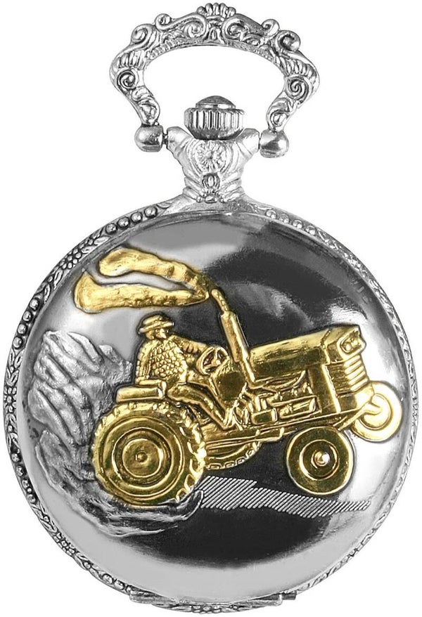 Excellanc Taschenuhr Trecker silberfarben – Klassische Taschenuhr für Landwirtschaftsfreunde
